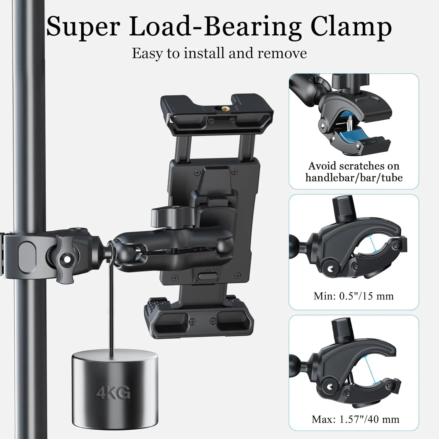 Supports a wide range of devices: iPad Pro 12.9 Air Mini, Galaxy Tab, iPhone, and Fire HD 10. The holder is designed for 5-13inch devices. It offers a reliable solution for mounting your device, ensuring it's always within reach. Perfect for your active lifestyle.