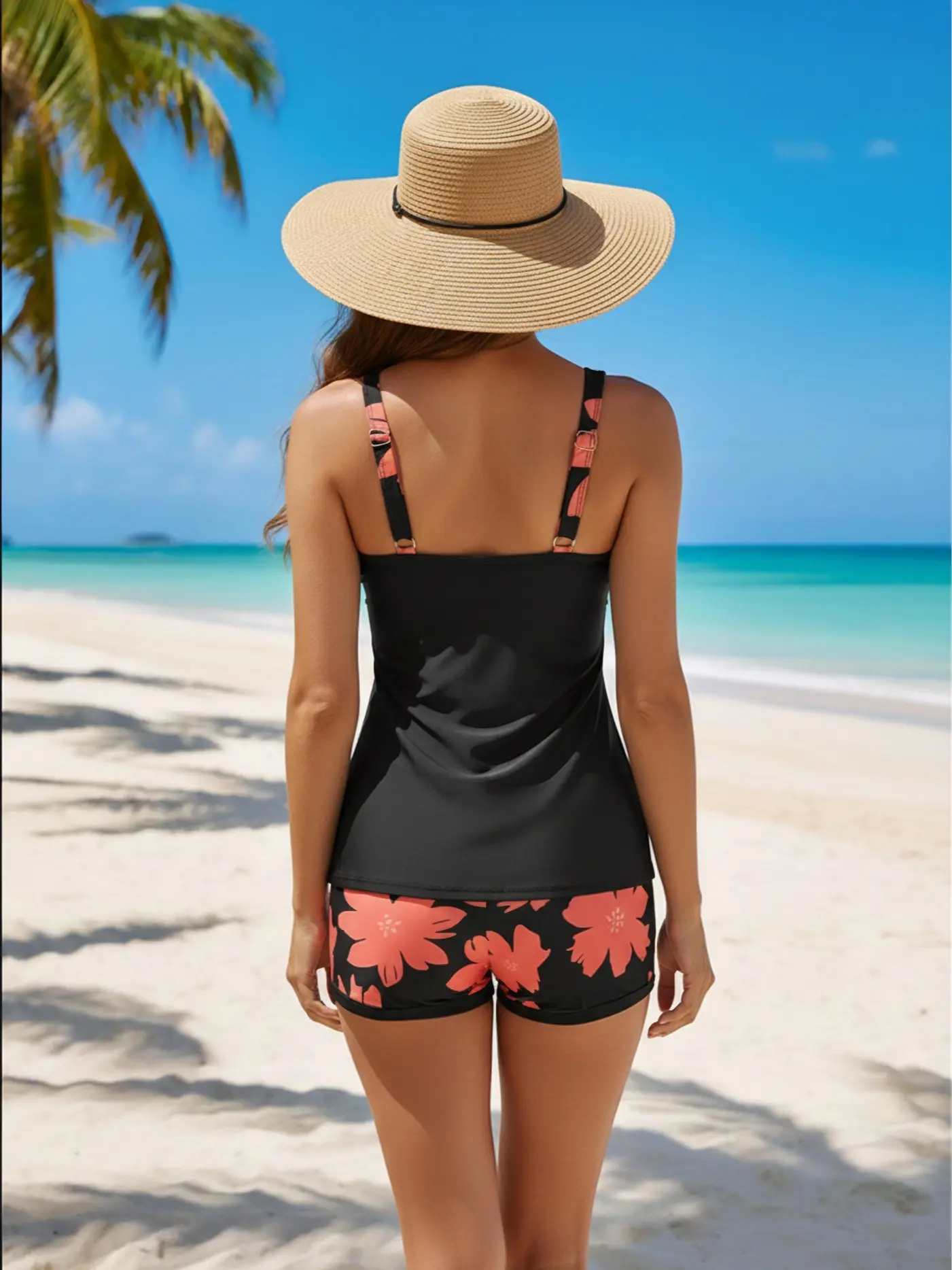 ✨ Elevate your beach style with this two-piece tankini swimsuit. The blouson swim tank top pairs perfectly with shorts, offering a modest yet stylish look. Ideal for beach wear, this set ensures you stay comfortable and fashionable.
