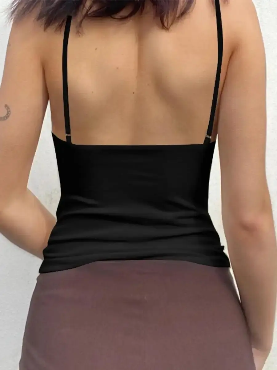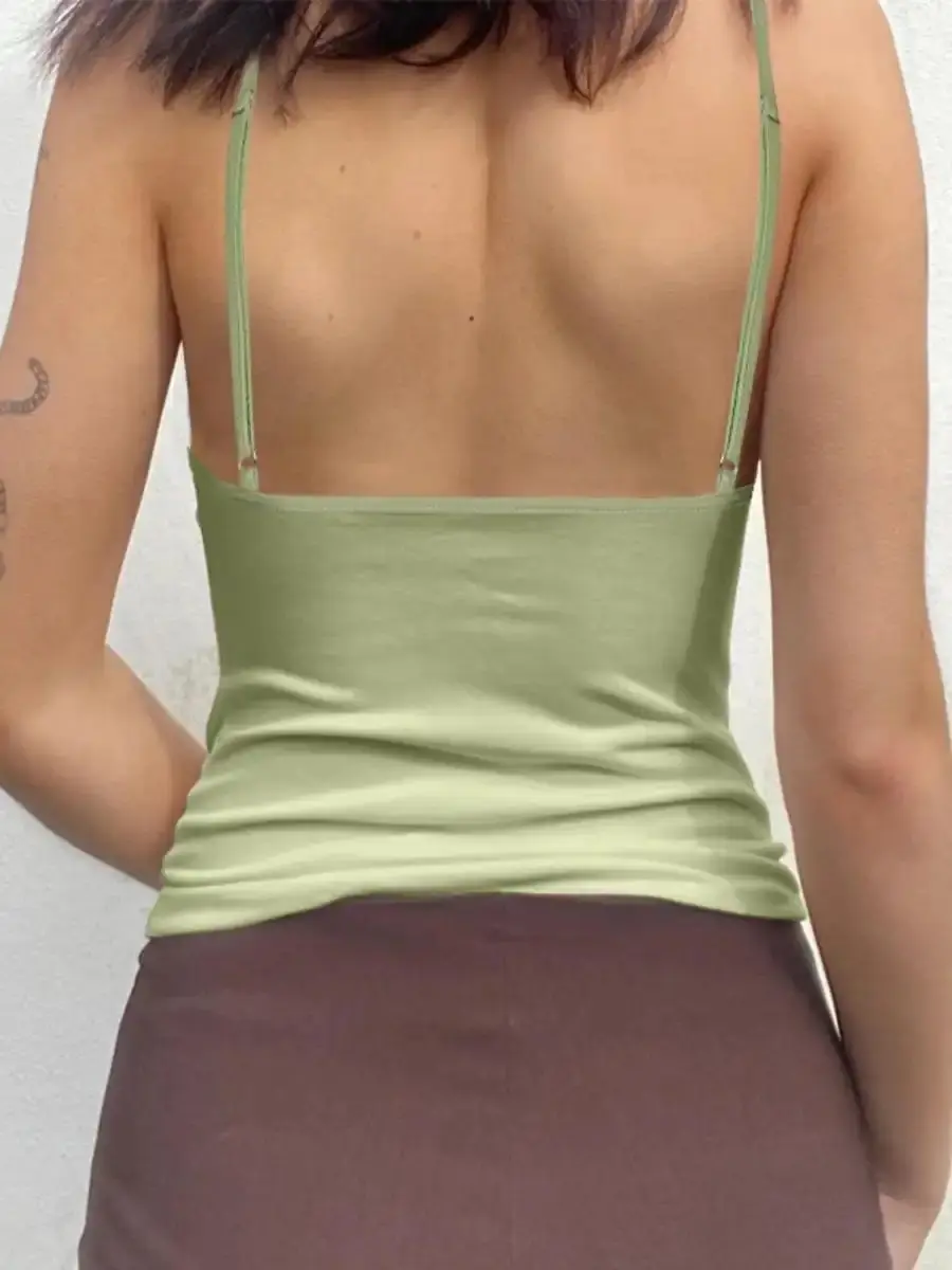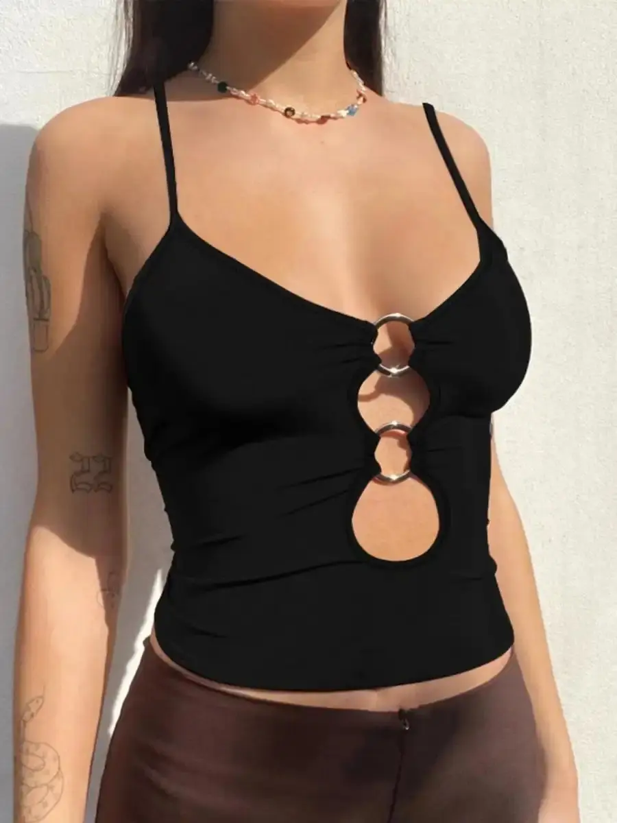Women's Plain Cut Out O-ring Crop Cami Top, Streetwear Solid Adjustable Spaghetti Strap Backless Top for Nightclub Music Festival, Ladies Clothes for Summer, Valentine's Day Gift for Girl