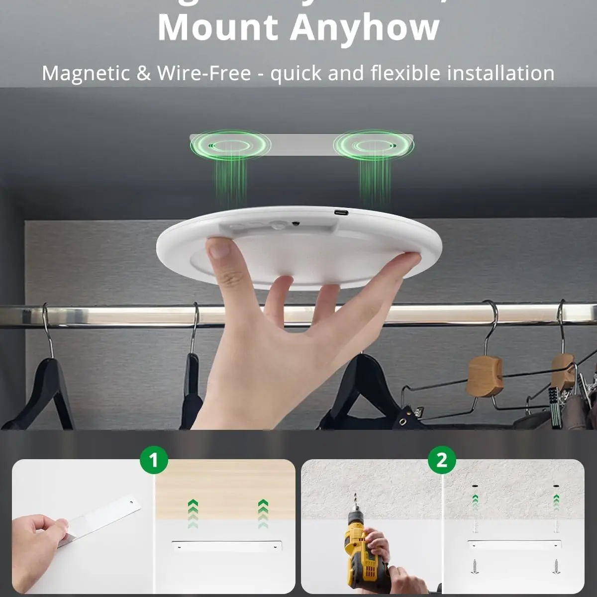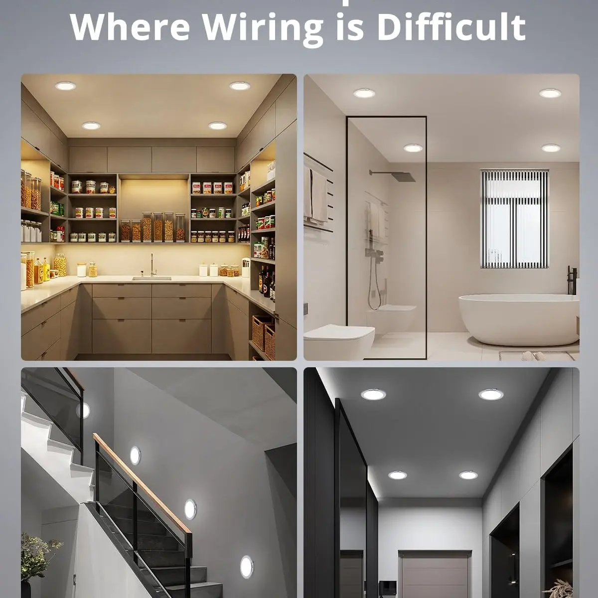 Rechargeable Ceiling Light with Remote Control, Human Body Sensing, Adjustable Color Temperature, Wall-Mounted, Ideal for Closet, Storage, Living Room