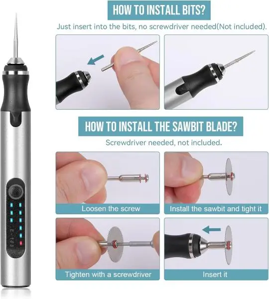 ·️ Precision Pen-Style DesignErgonomically designed like a pen for maximum control and comfort. It features a standard collet that fits most rotary accessories. Perfect for detailed work where a large Dremel tool is just too clumsy.