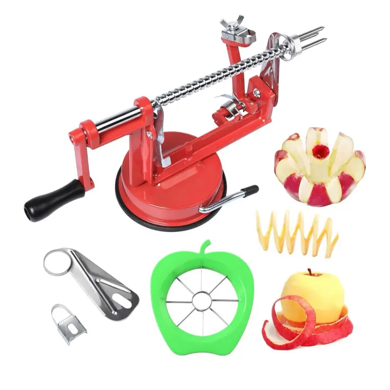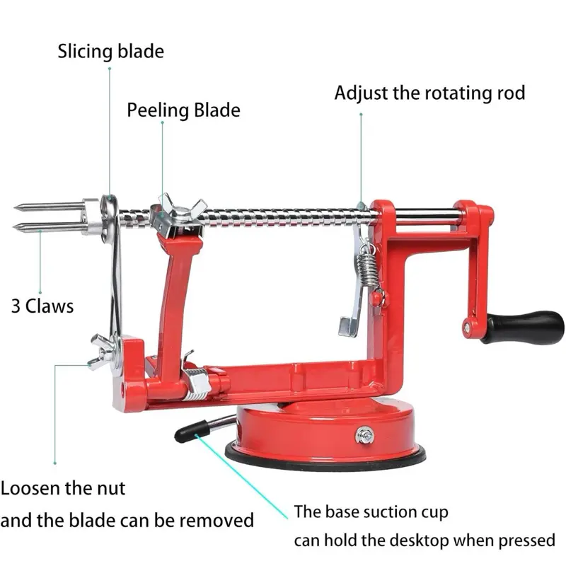 Brand new Apple Peeler Corer, Apple Peeler, 3 in 1 Peel Slice Remove Core, with Suction Base Suitable for Apples, Pears, Potatoes, Carrots (Red)