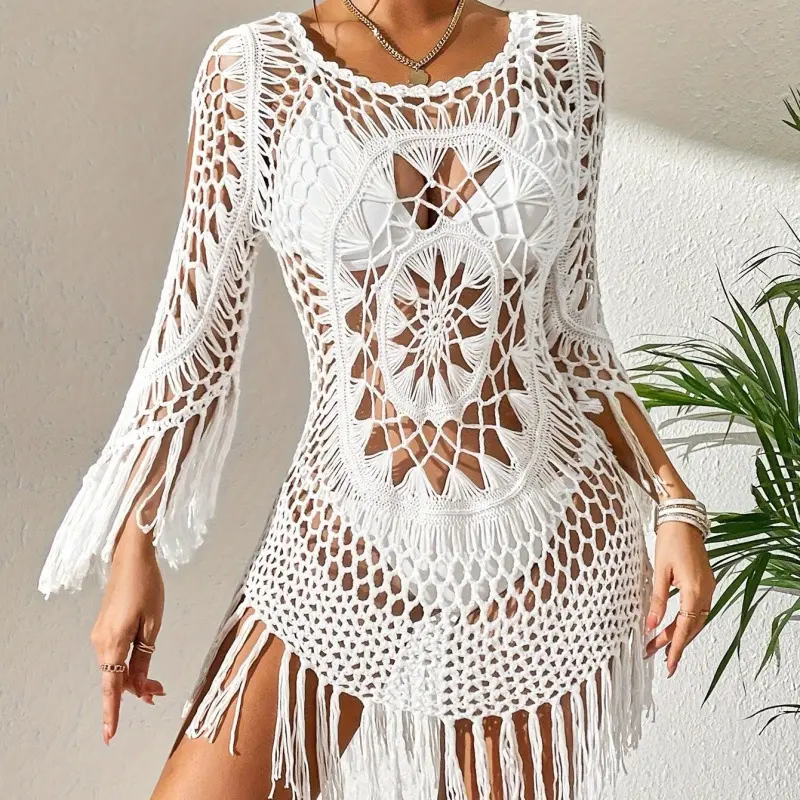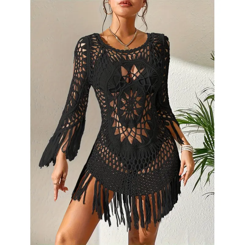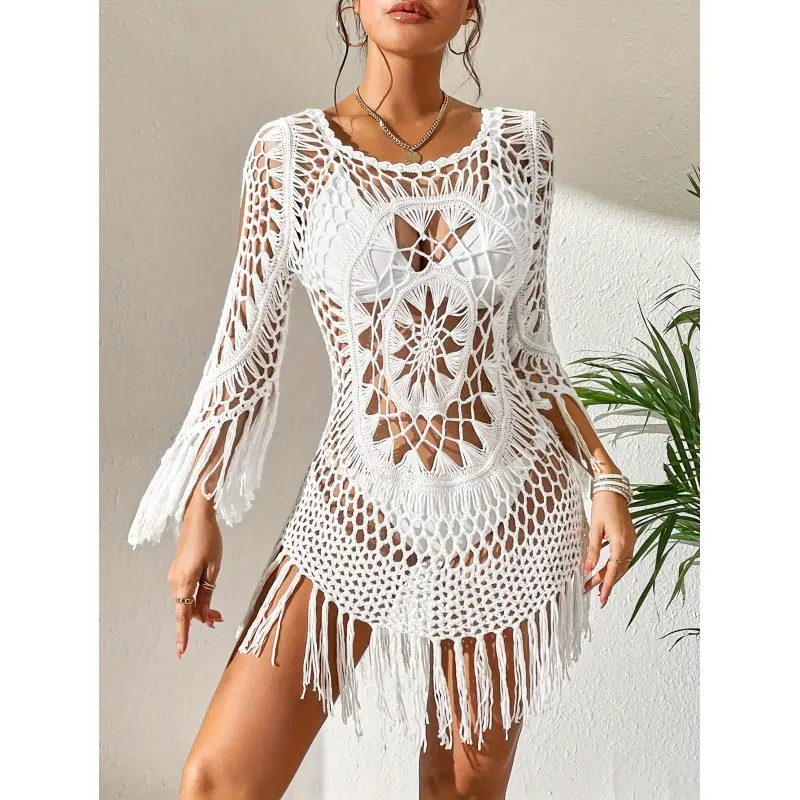 🏖️ Transform your beach wardrobe with this stylish cover-up. The hand-crocheted material ensures a lightweight and breathable feel. Ideal for lounging or strolling along the shore, it's a must-have for your 2026 beach collection. Enjoy the season in comfort and style.