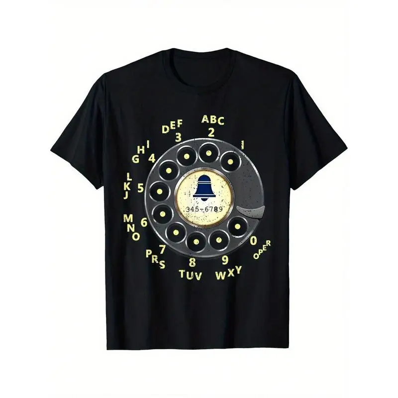 This men's short sleeve T-shirt comes with a classic vintage dial phone print, bringing a strong retro nostalgic vibe to your daily look. The crew neck and regular fit offer all-day comfort and free movement, perfect for daily outings, streetwear, family gatherings, weekend trips, casual hangouts and summer wear. The soft and lightweight fabric ensures a comfortable wearing experience, while the timeless retro design makes it super versatile to match with jeans, shorts, casual pants and various daily bottoms. It can also be worn as a family matching outfit for a warm and stylish look. The durable and clear print keeps the vintage phone pattern vivid for a long time. Simple, fashionable and easy to match, it is a must-have basic retro top for everyday wardrobe.