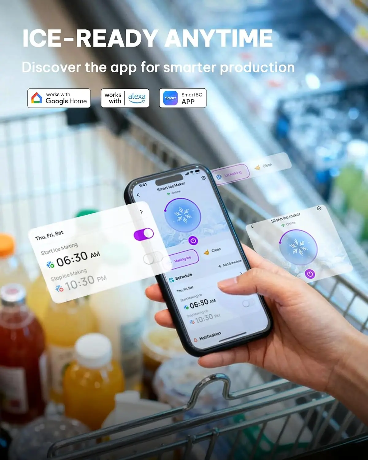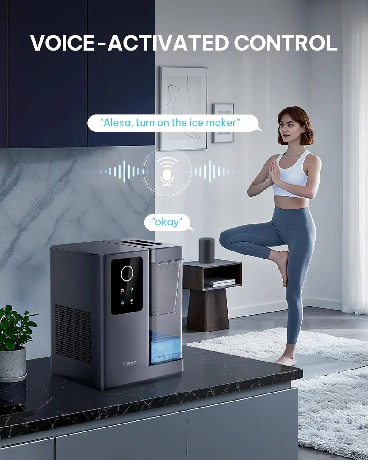 ·Smart App & Voice Control: The pebble ice maker has an intuitive LED color display. Simply press the "ice" button to start making ice. You can also control ice making with just your voice – freeing up your hands for other tasks. With the SmartBQ App, you can easily use it remotely with a timer function that lets you enjoy fresh ice anytime.