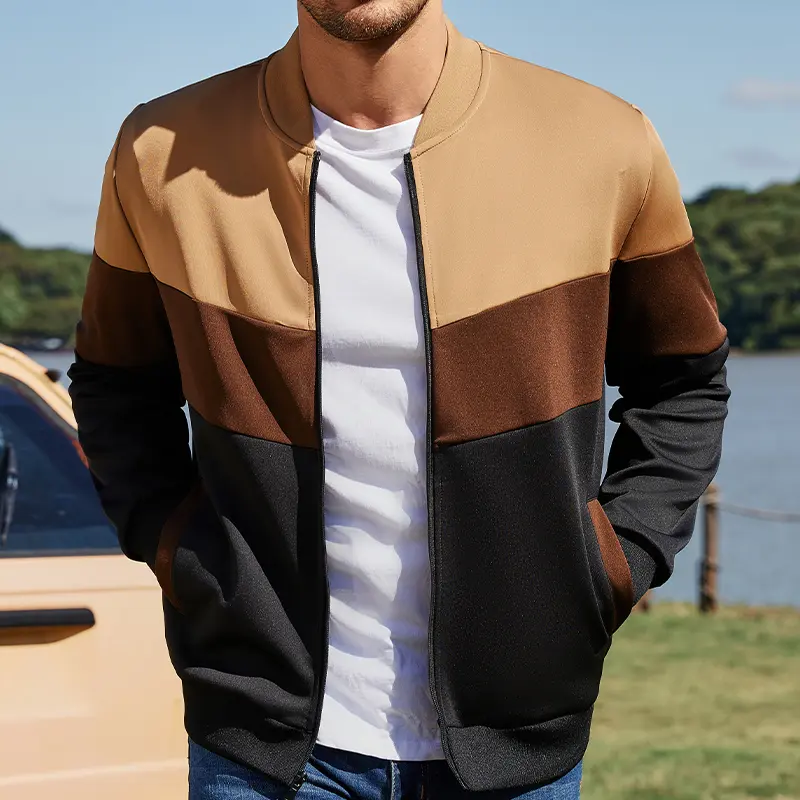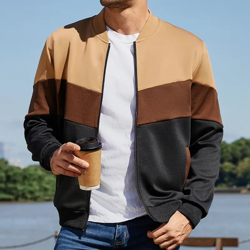 Grandclad Mens Lightweight Jacket Casual Bomber Jacket Color Block Varsity Coat