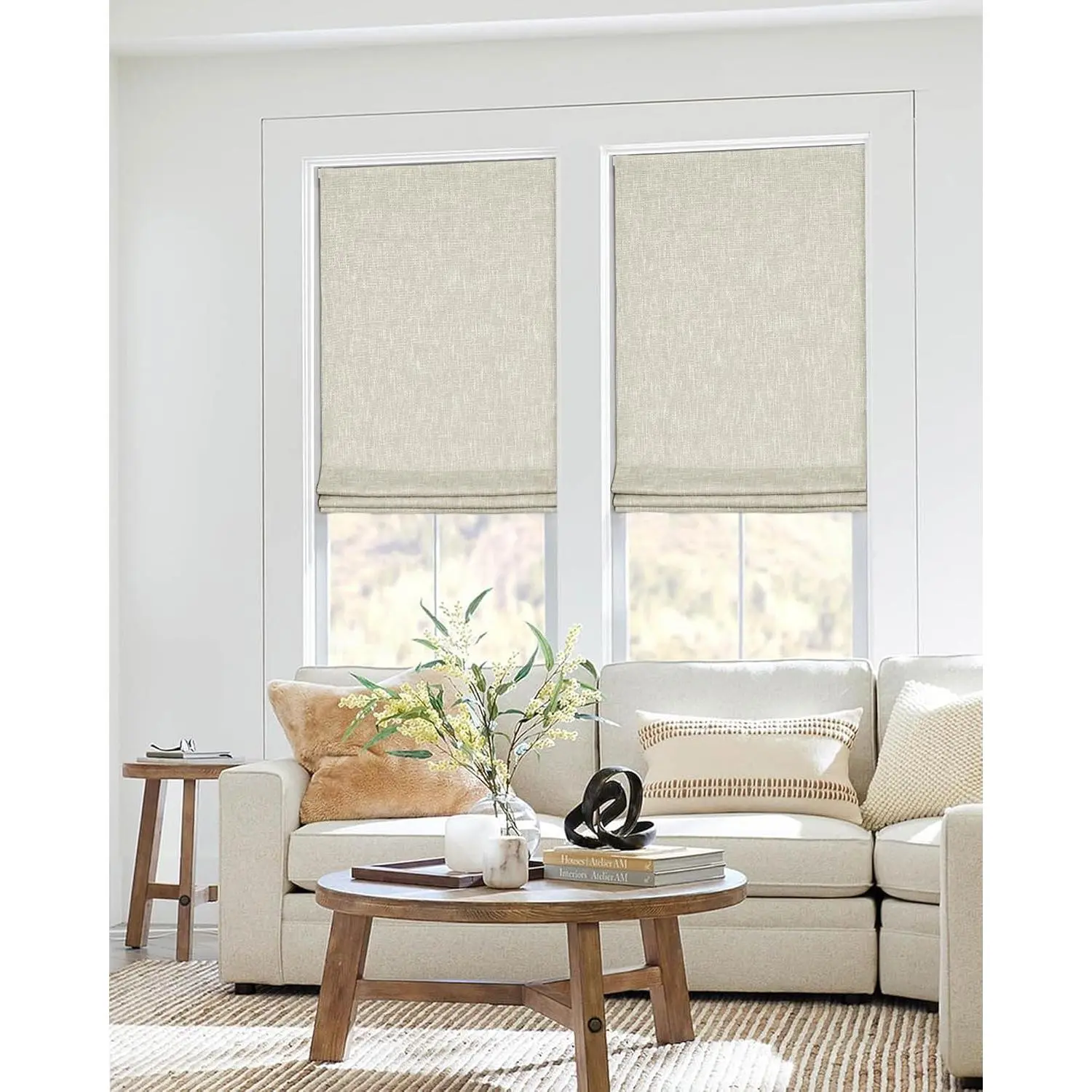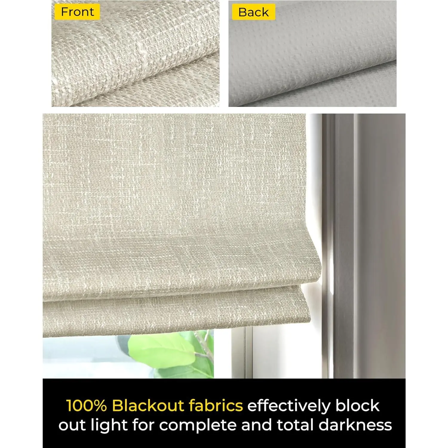 No Tools No Drill Cordless Roman Shades for Indoor Windows 100% Blackout, for Window Size 34" W * 64" H Beige