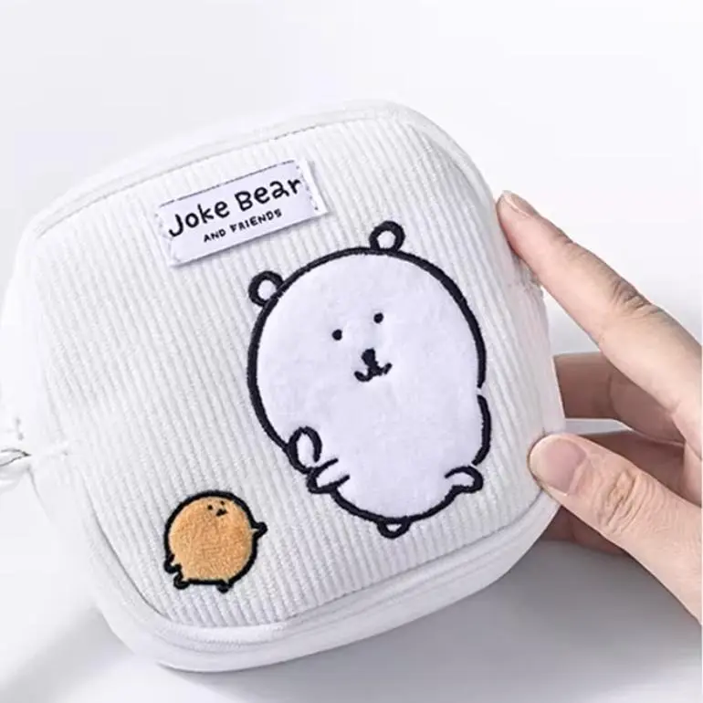 A compact and lightweight storage pouch from the Joke Bear series, designed for everyday convenience. Featuring a practical carrying strap for easy portability, it’s perfect for organizing small items, makeup, stationery, or accessories. Made from durable corduroy fabric, it offers a structured yet soft look that holds its shape well.