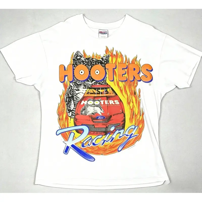 Vintage original 1995 Hooters Racing Breakthrough T-shirt, fun-filled retro Nascar aesthetic pattern T-shirt, 90s aesthetic racing fan top, stylish oversized racing classic design, high-quality thick cotton classic clothing