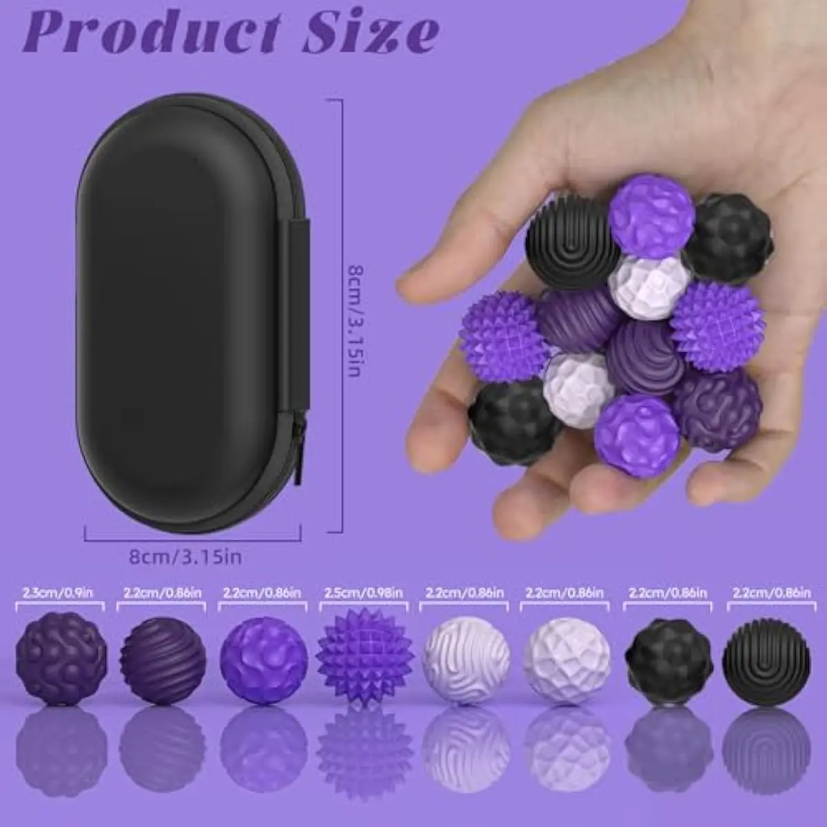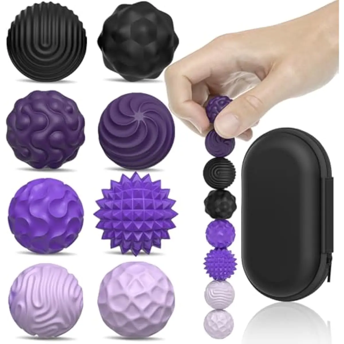 Unique Fidget TexturesEach of the 8 sensory balls features a different tactile surface—from soft and soothing to dynamic and energizing, each texture caters to your varying sensory needs. Whether youre seeking calm or stimulation, this sensory set supports the focus and regulat.