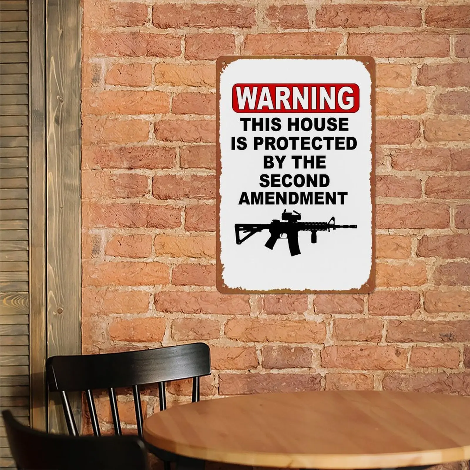 8x12 Inch Home Security Warning Sign, "Protected By The Second Amendment" Patriotic Metal Wall Art For Porch