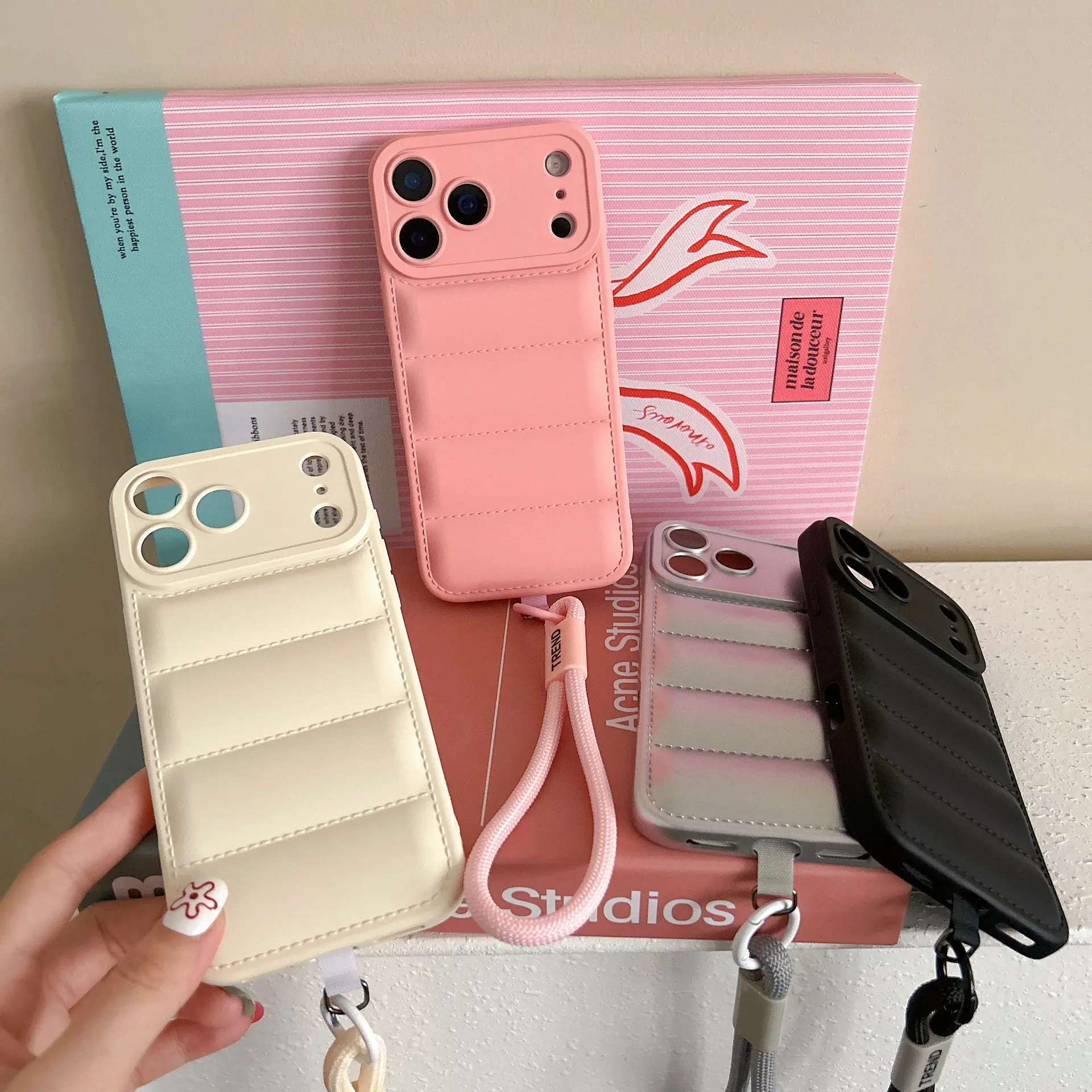 Suitable for Apple 17 Pro, 3D oil-sprayed down jacket phone case, iPhone 8 hand strap, anti-drop liquid 15 protective cover