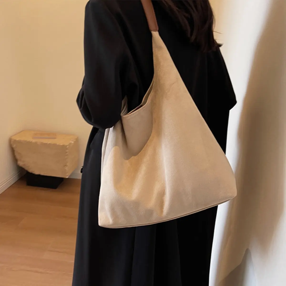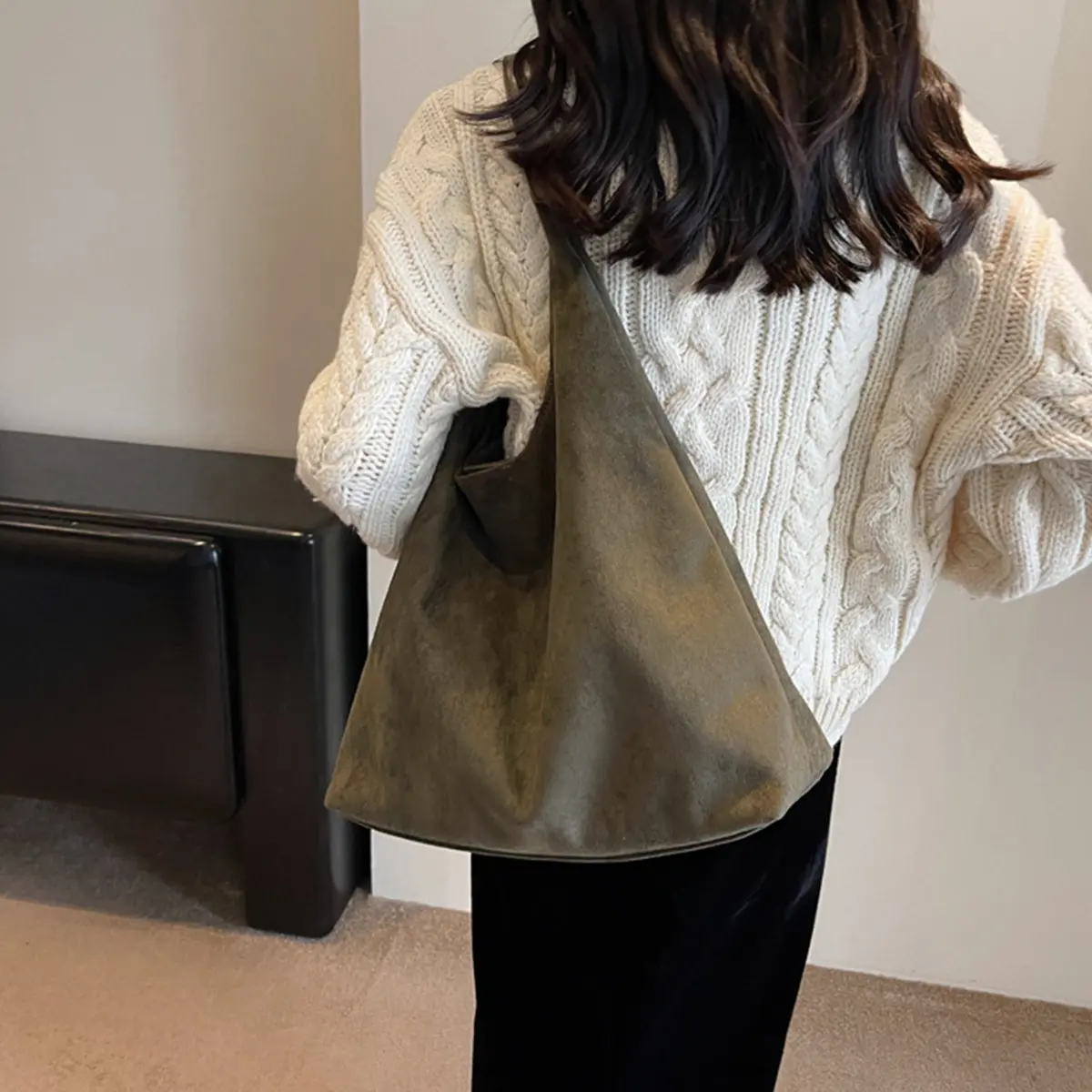 Women's solid color suede crossbody bag, 2026 new style fashionable crossbody bag, large capacity daily travel and work commuting shoulder bag, casual commuting bag