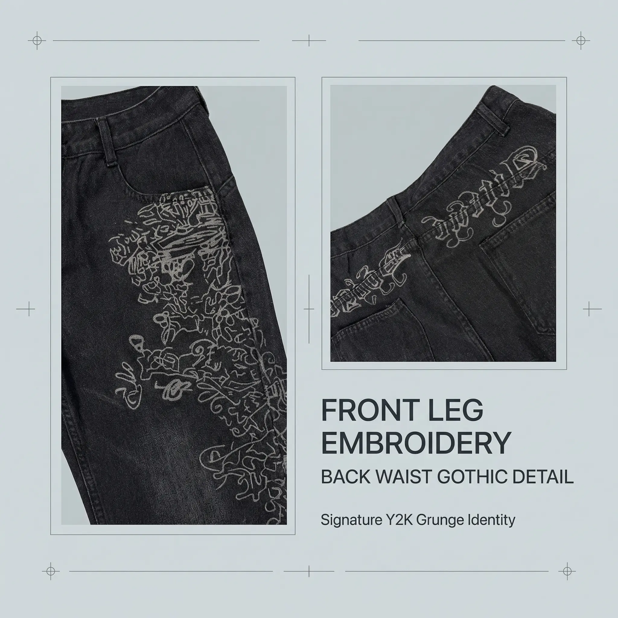 ·Streetwear with Embroidery: Featuring Y2K cybersigilism, gothic, and vintage grunge embroidery, these jeans are a standout piece in any streetwear collection. The intricate designs add a touch of edginess and personality to your outfit.