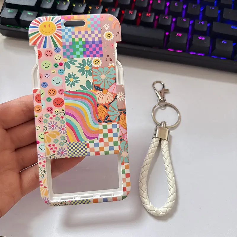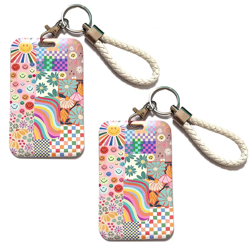 2 pieces of floral ID durable keychain badge holder, suitable for school nurses, office, bus card holder, keychain integrated student meal card, ins lanyard, factory card pick-up and drop-off ID protector, access control