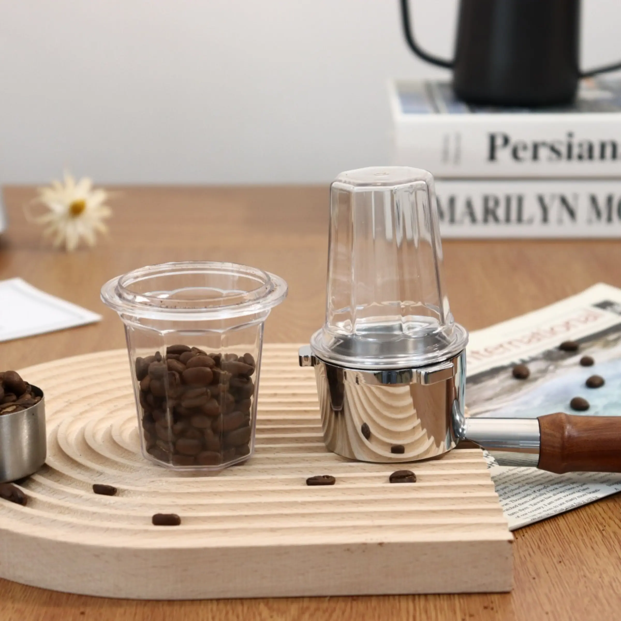 ·Premium Material: The dosing cup is made of food grade PP material which is lightweight and durable. Transparent cup allows a clear view of your coffee grounds. Shake your coffee inside the cup without spilling any coffee powder.