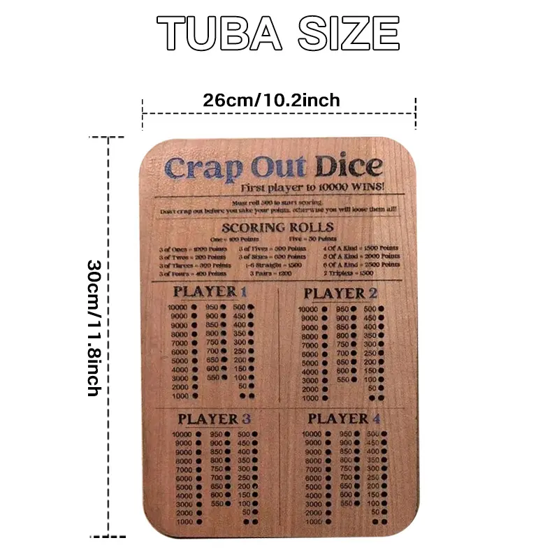Enjoy hours of fun and friendly competition with the Crap Out Dice Score Board!