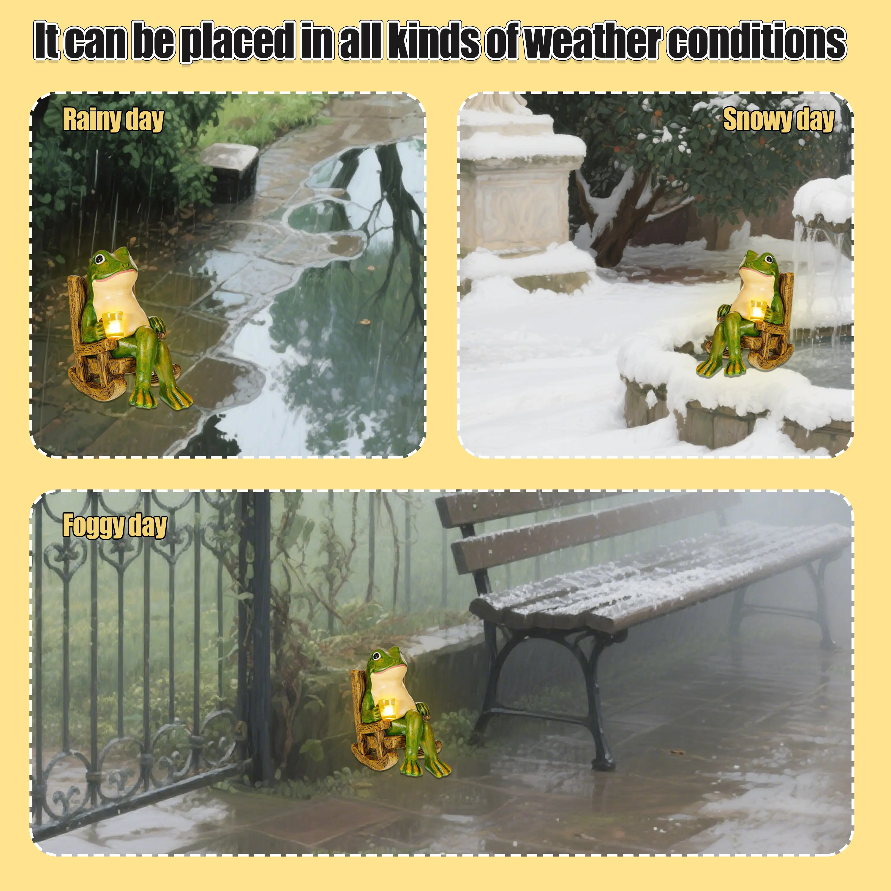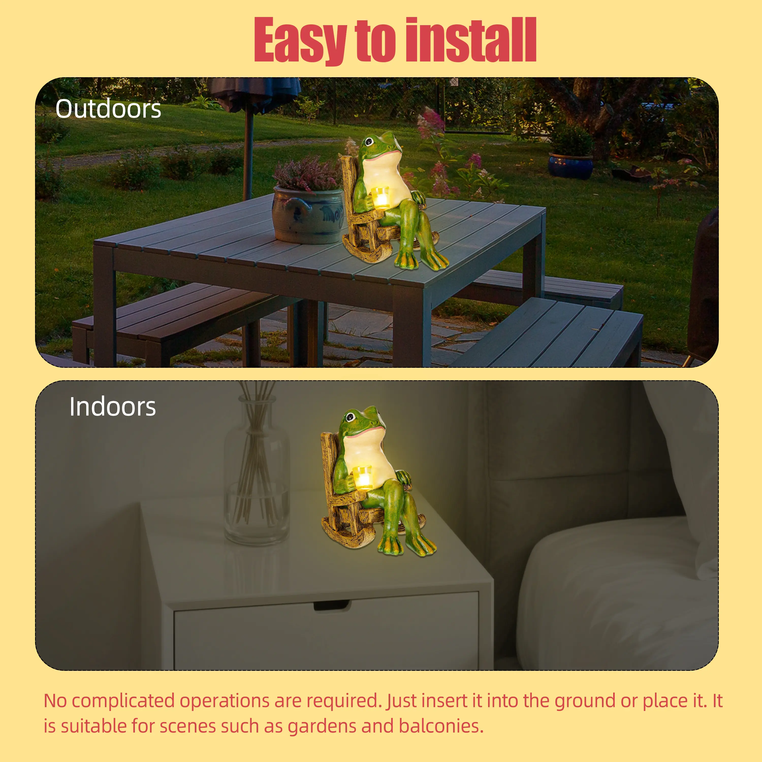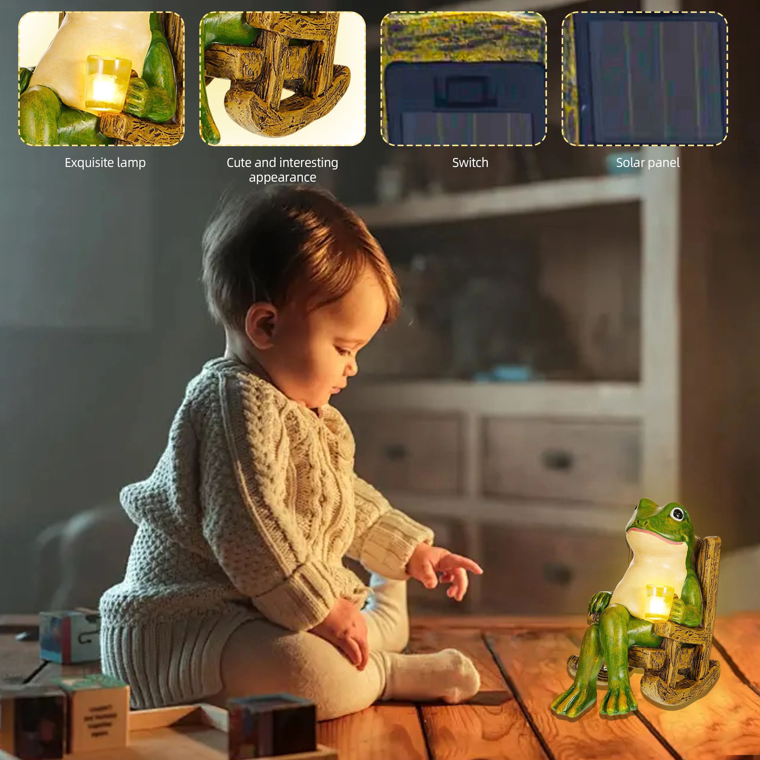 This unique night light features a charming frog design, perfect for adding a touch of whimsy to any space.It operates on solar power, making it an eco-friendly choice for your home.The light is designed to illuminate your surroundings gently at night, enhancing the ambiance without overpowering the room.