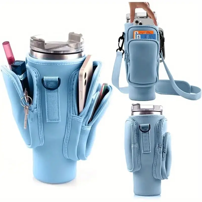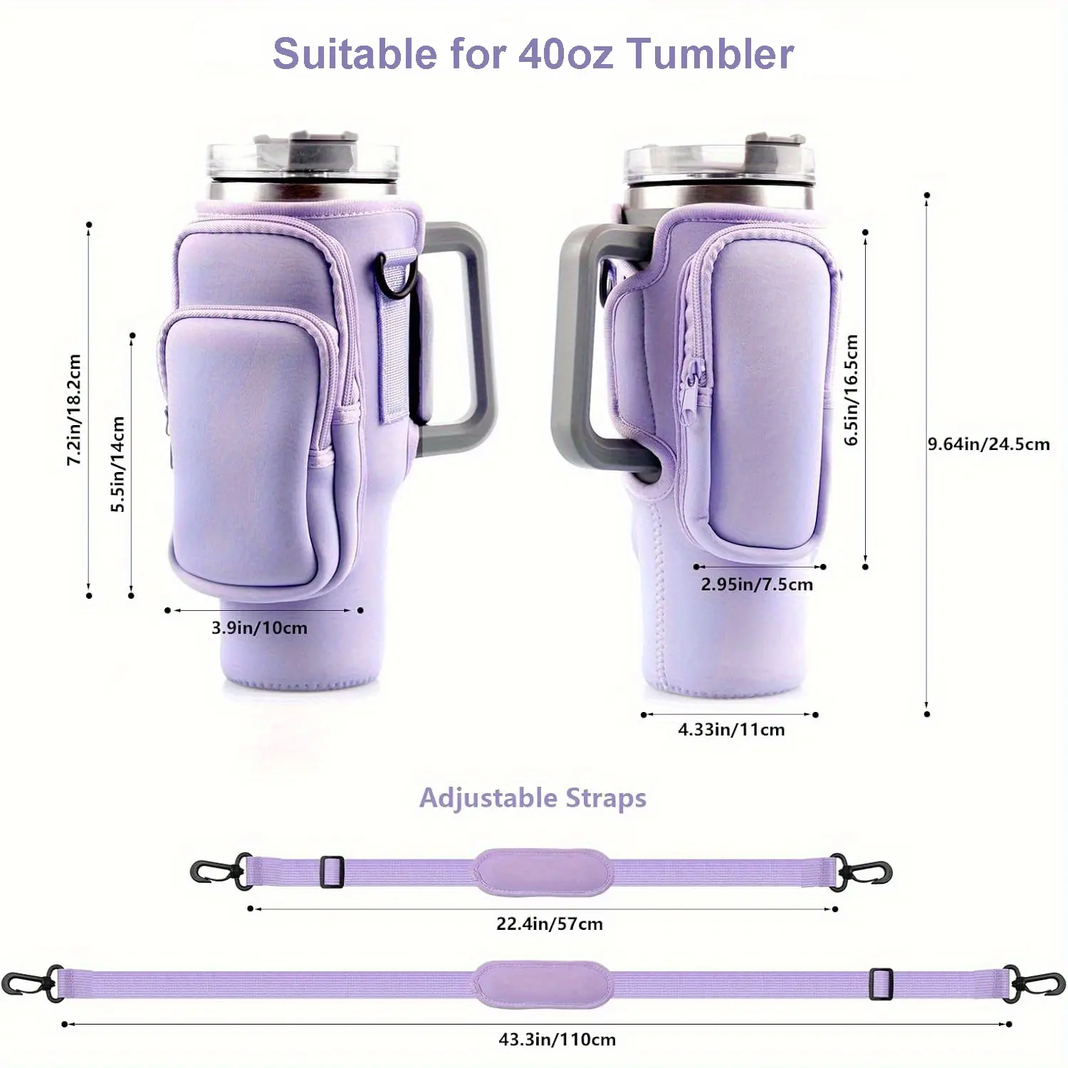 Versatile Compatibility Stanley Cup Holder: Specifically tailored as an ideal accessory for Stanley Quencher H2.0 FlowState Tumbler 40 oz with Handle, Simple and Modern 40 oz Tumbler with Handle, and Stanley Adventure Quencher Travel Tumbler 40 oz.Whether you're on a hike, bike ride, run, gym workout, or traveling, this water bottle bag complements your Stanley cup perfectly, ensuring convenience and functionality wherever you go.