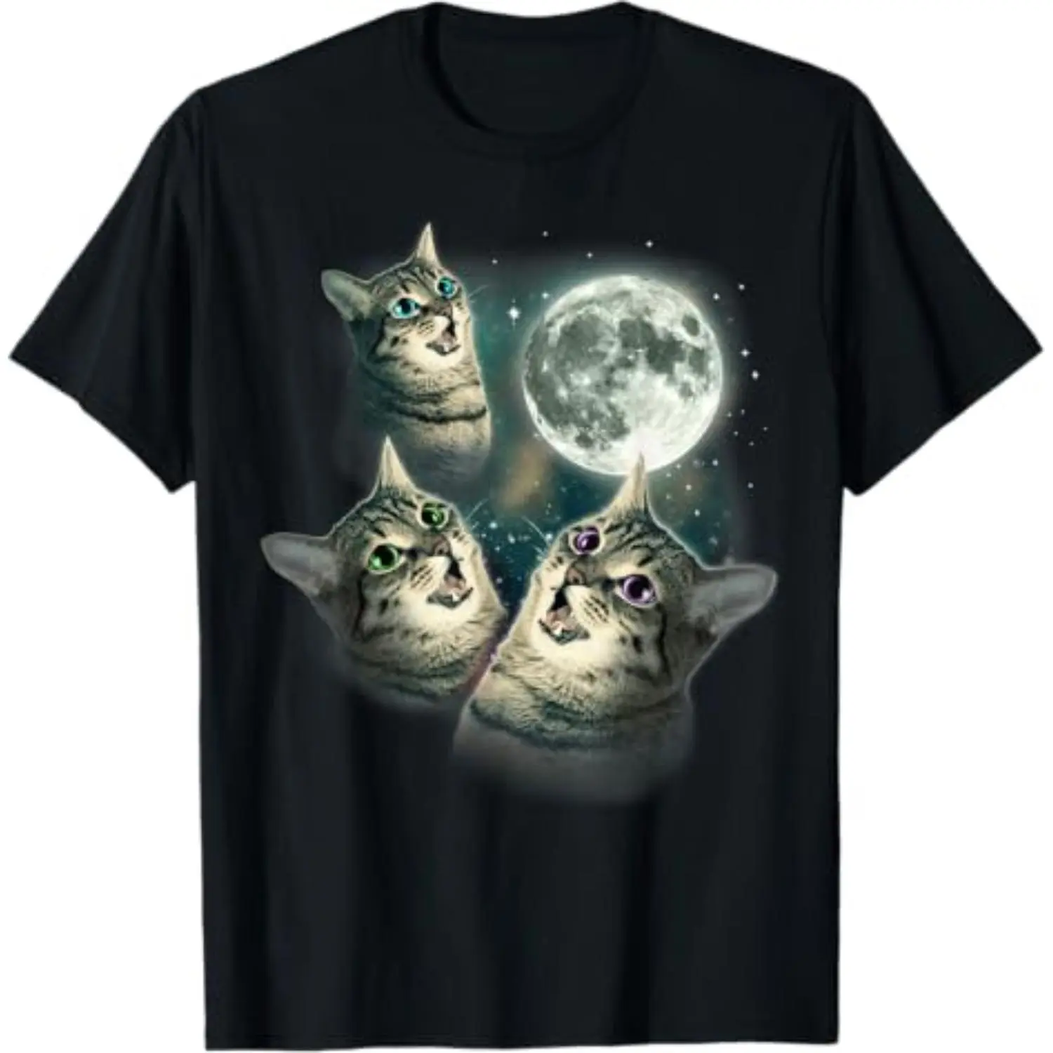 Funny Cat Shirt | Three Cat Moon 3 Wolfs Cute Kitten Graphic T-Shirt Menswear Top Casual Streetwear