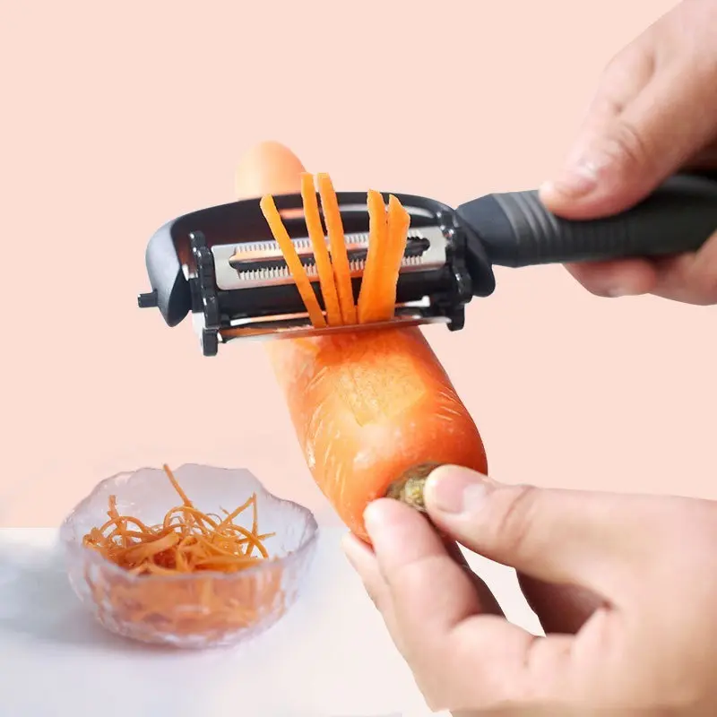 Switch between ultra-sharp peeling blades and precision slicing/grating heads in seconds! Peel potatoes, carrots, kiwi, and more in one smooth glide, or slice perfectly thin, uniform veggies for chips, salads, and stir-fries – no more lumpy cuts, no more wasted time.