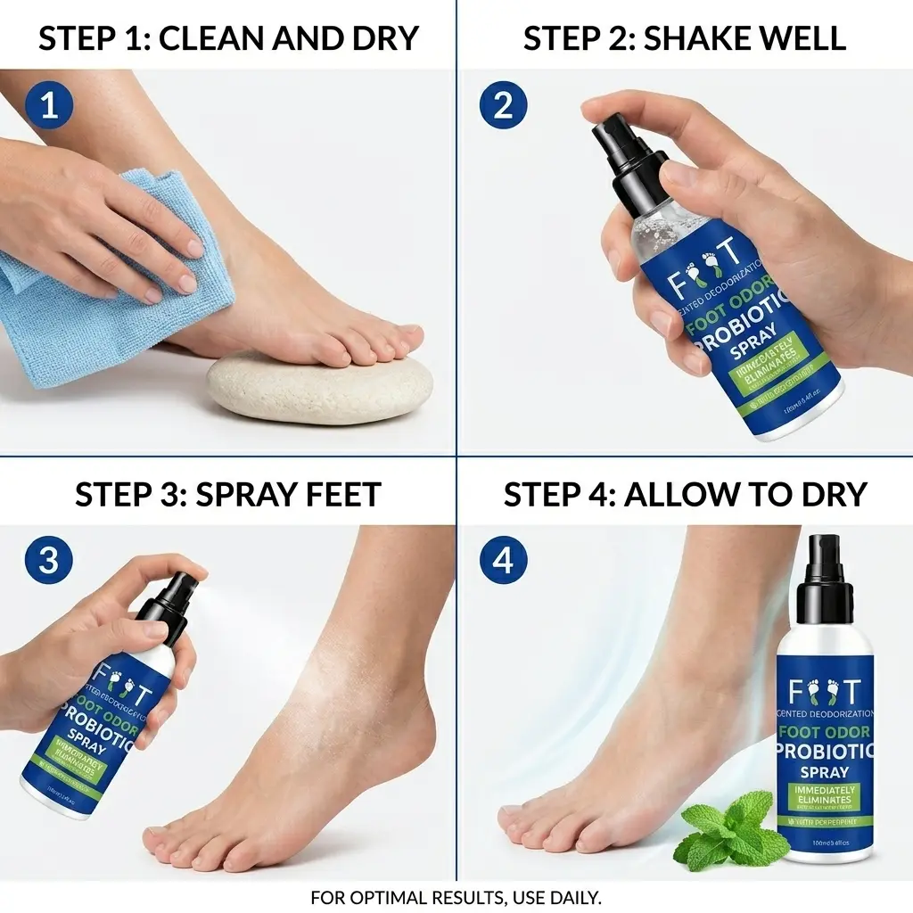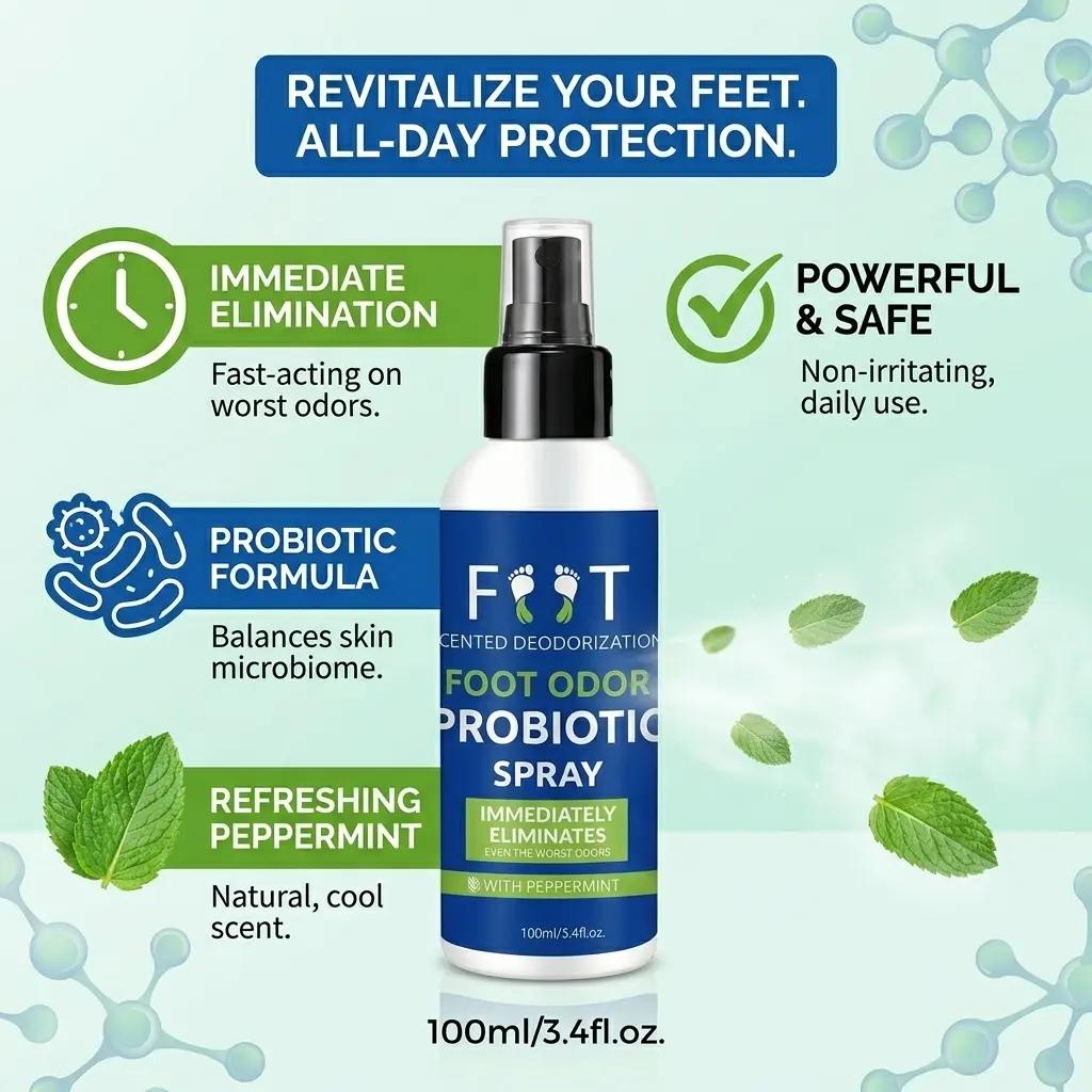 Say goodbye to embarrassing foot odor for GOOD! Our FOOT Probiotic Foot Odor Spray is your all-in-one solution for smelly feet, stinky shoes, and household odors. Powered by natural plant extracts and probiotic technology, it doesn’t just mask smells—it eliminates odor-causing bacteria and fungi at the source, leaving a long-lasting, refreshing peppermint scent.