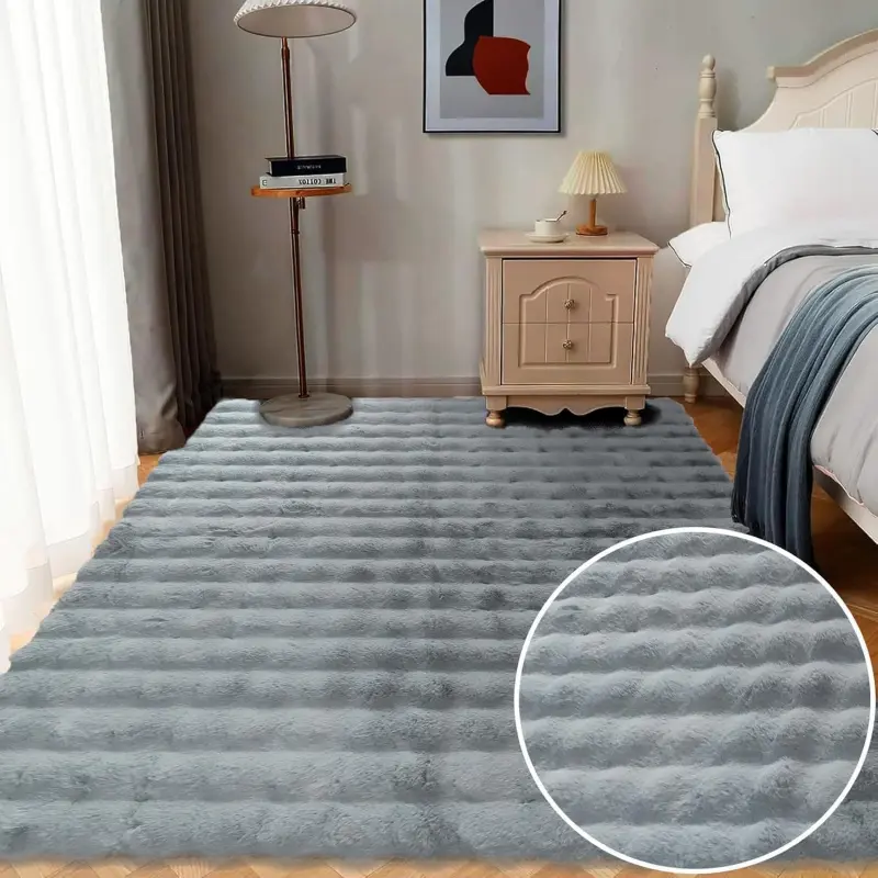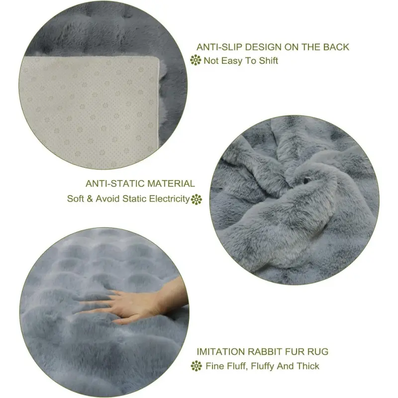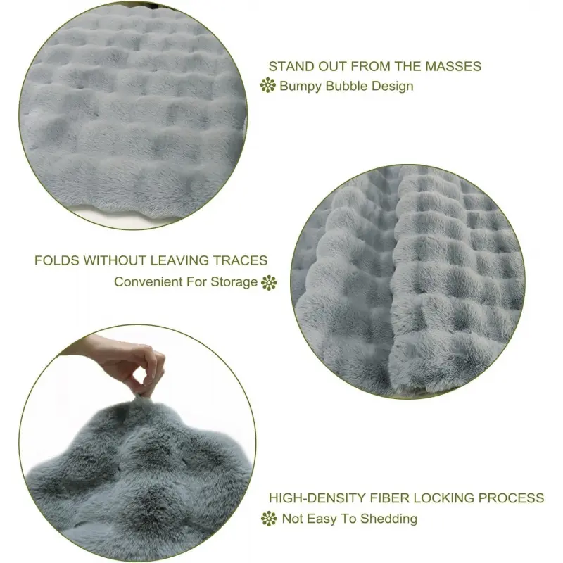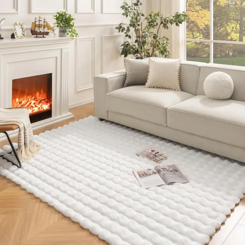 Imitation Rabbit Fur Bubble Fleece Living Room Rug, Faux Fur Soft Rugs, 1 Count Plush Area Rug, Decorative Carpet for Home, Living Room, Bedroom, Hotel, Modern Fuzzy Floor Mat, Aesthetic Room Decor, Cozy Shaggy Rug