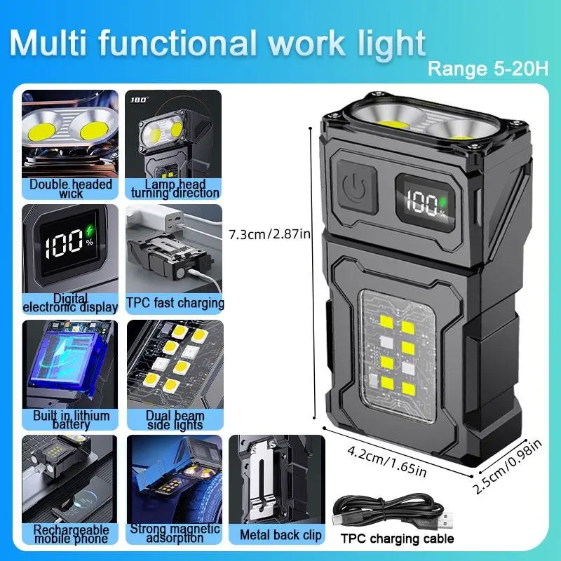 [Quick Charge]: Utilize the TYPE-C fast charging capability for swift recharging, ensuring the light is ready when you need it.