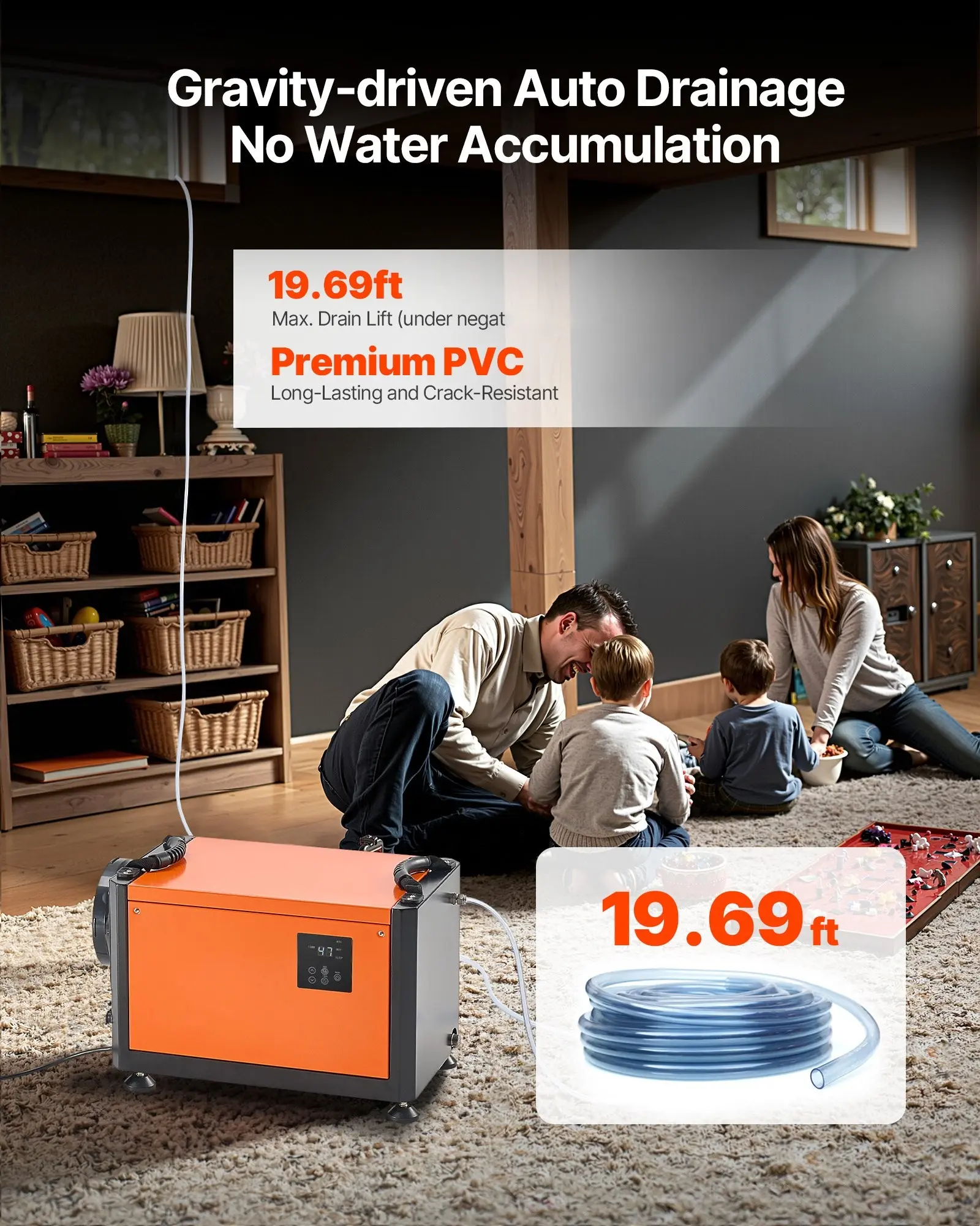 ·No Water Buildup: Built-in pump with a 19.69 ft drain hose and 14.76 ft max lift allows effortless drainage, avoiding overflow. The tough PVC hose is cracking-resistant, ensuring long-lasting, reliable performance