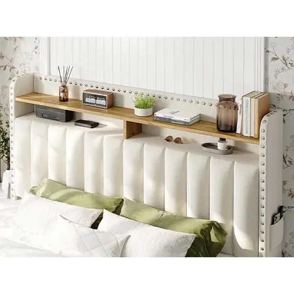 [Stylish Design Bed Frame with Storage] The stylish rivet design and upholstered headboard make you more comfortable to lean on the full bed frame with storage.