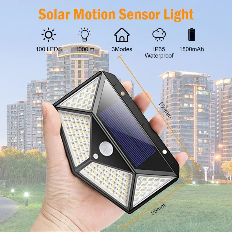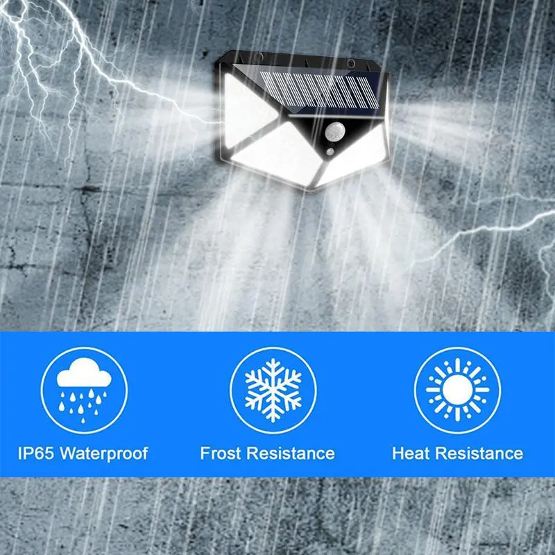 [100 LED Brightness]: Equipped with 100 LED bulbs, this solar wall lamp provides exceptional brightness, ensuring your garden or yard is well-lit during the night.