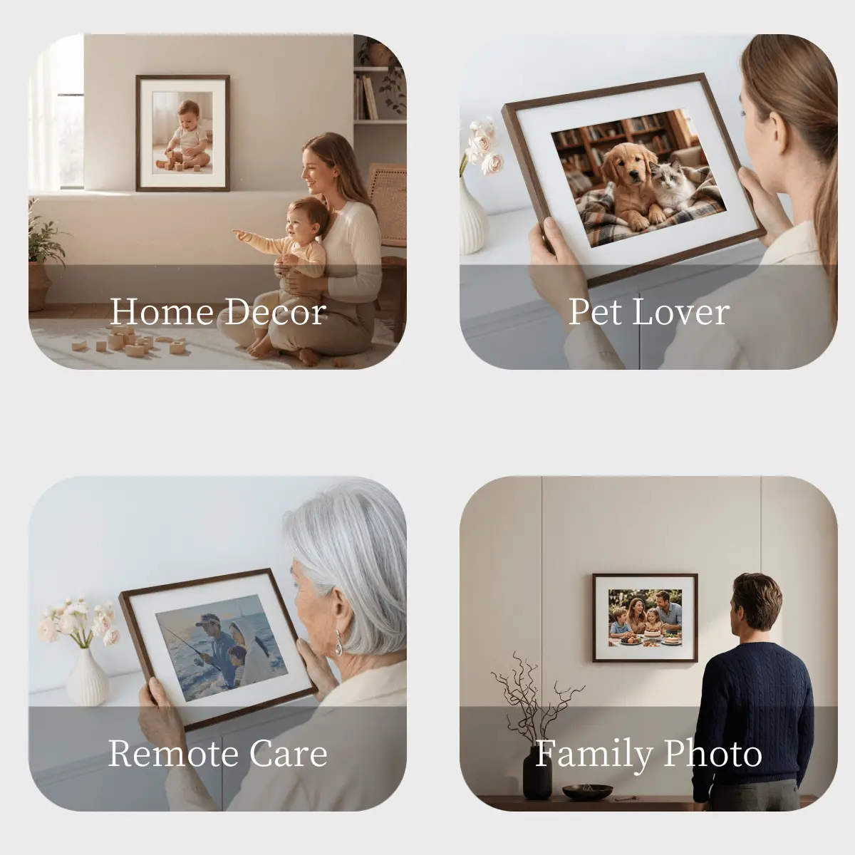 Designed for long-distance couples and families. Instantly upload photos from your phone directly to their frame via the app. It’s a "window" that keeps your loved ones close, no matter the distance.