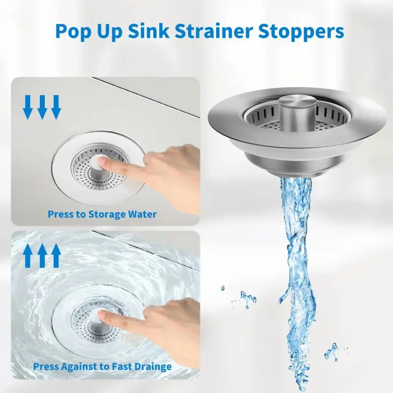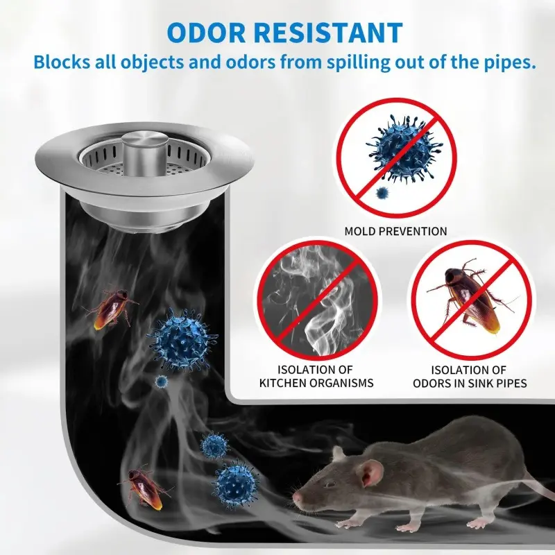 Introducing our 3-in-1 Kitchen Sink Drain Strainer—your all-in-one solution for water storage, filtering, and odor control. Engineered for easy installation and reliable performance, it catches food scraps to prevent clogs, ensuring smooth drainage. Ideal for kitchens, restaurants, and canteens, it’s the ultimate sink upgrade for effortless efficiency.