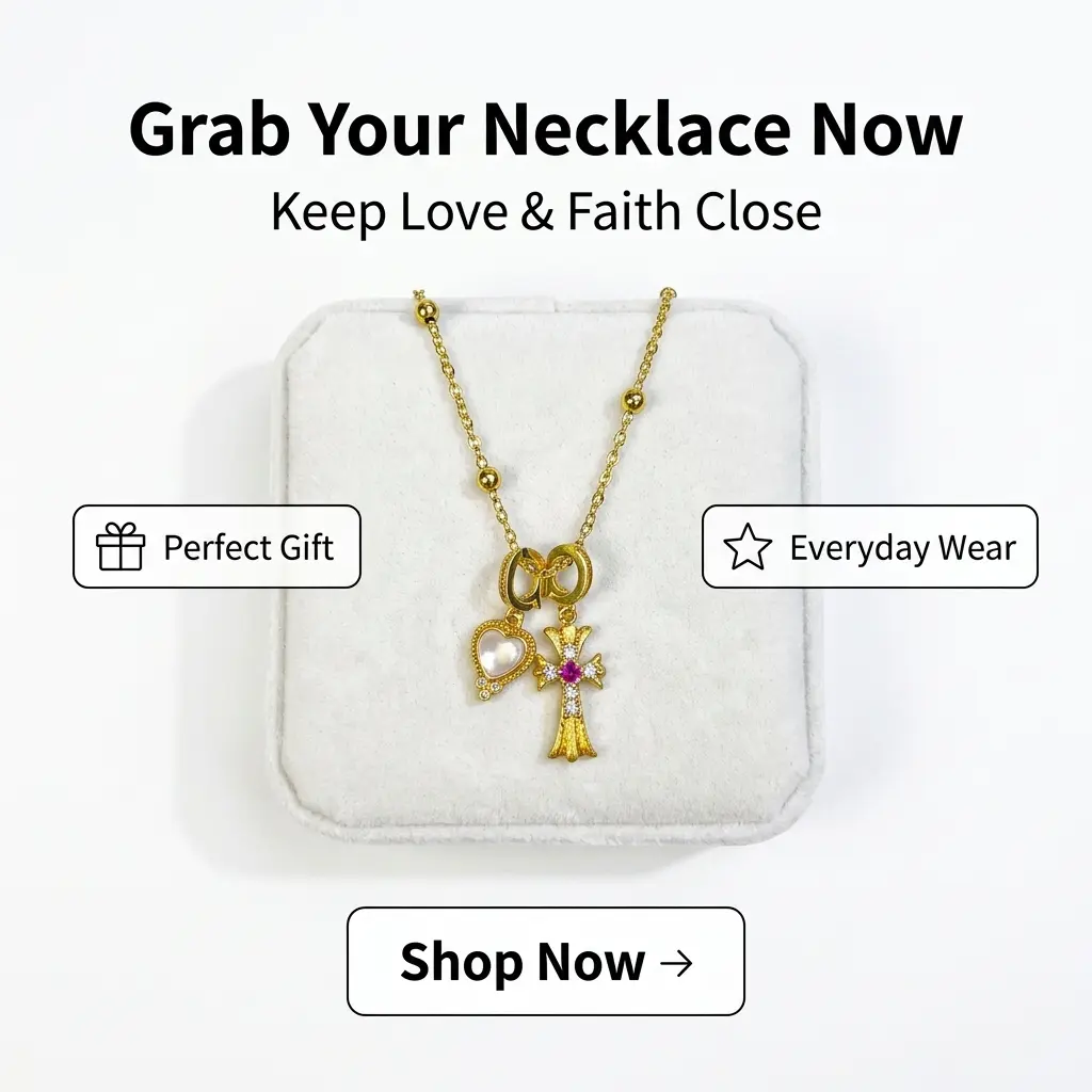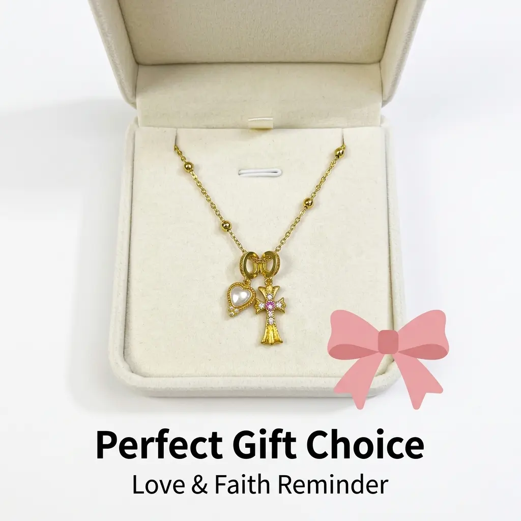 ·Cross Charm: Inlaid with tiny pink and white lab diamonds, this charm is sparkly and delicate, symbolizing luck and protection. 🌟
