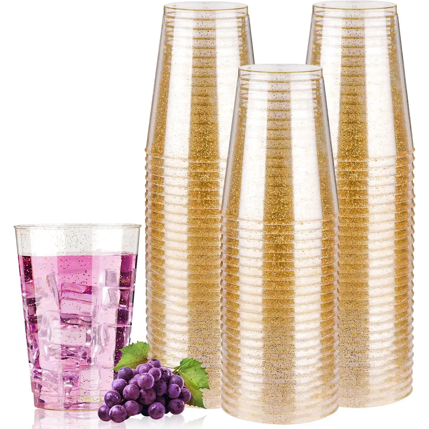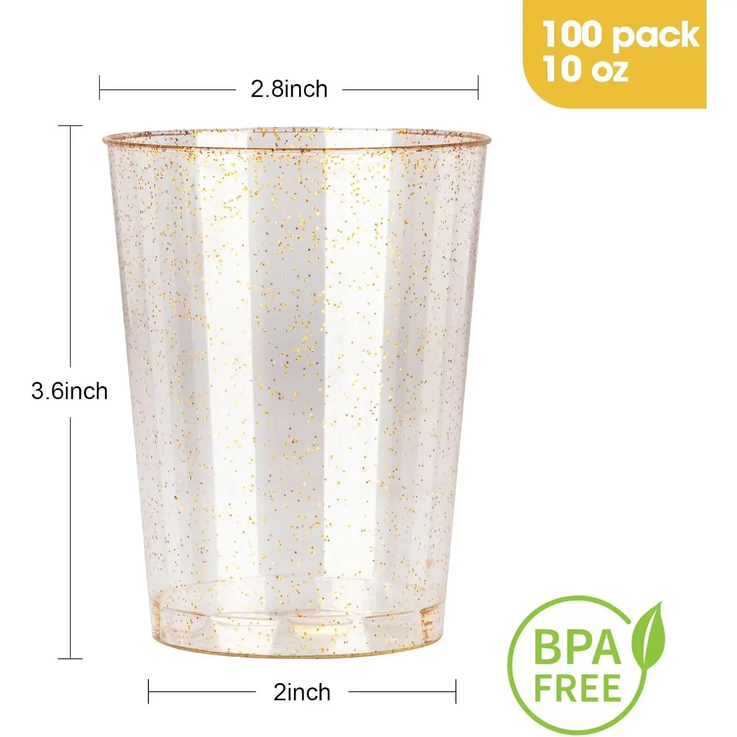 What You Get: Each package includes 100 pieces of 10 oz disposable gold glitter plastic cups, ready to enhance your event. Please note that these plastic cups are not microwave, oven, or dishwasher safe.