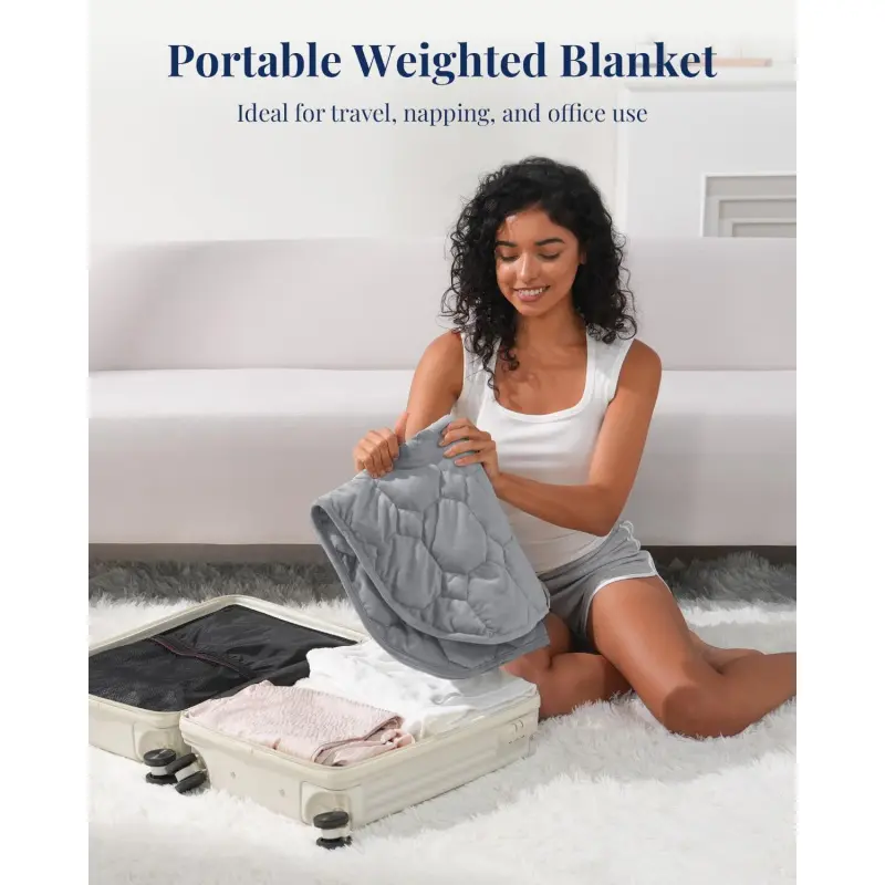 Portable: This travel weighted blanket is lightweight and easy to fold, designed specifically for travel.It comes with a convenient storage bag, allowing you to easily pack it in your suitcase or backpack for a comfortable experience anytime, anywhere