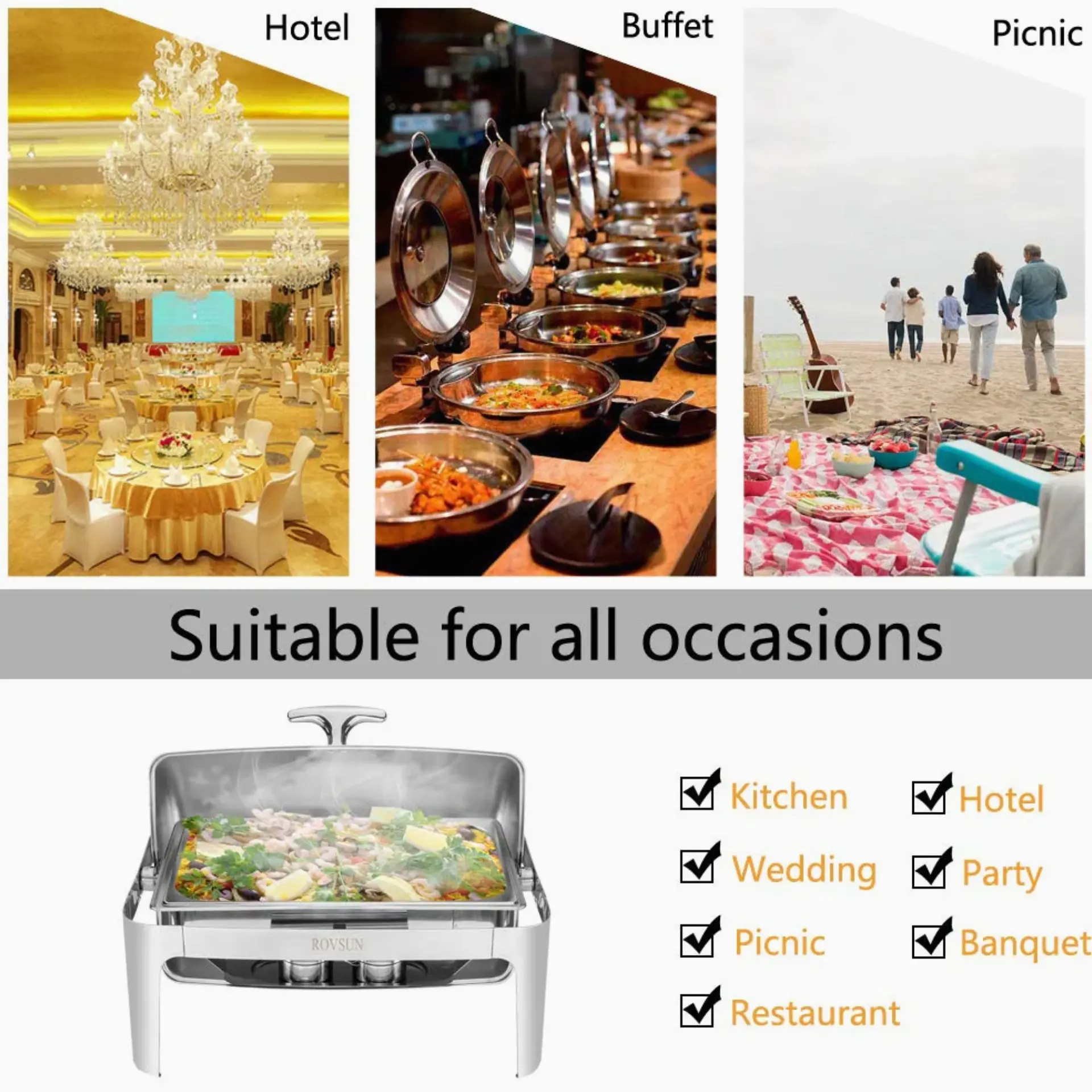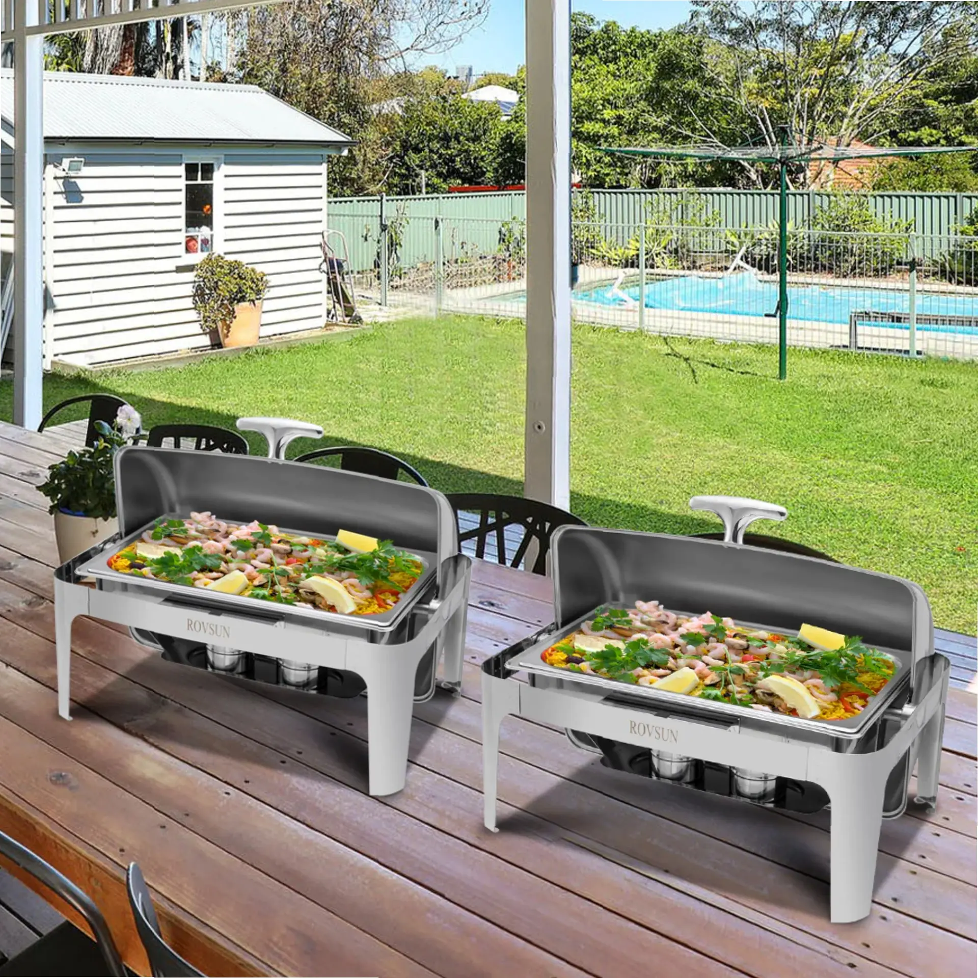 ROVSUN 9 QT Roll Top Rectangular Chafing Dish Buffet Set with Full Size Pan
