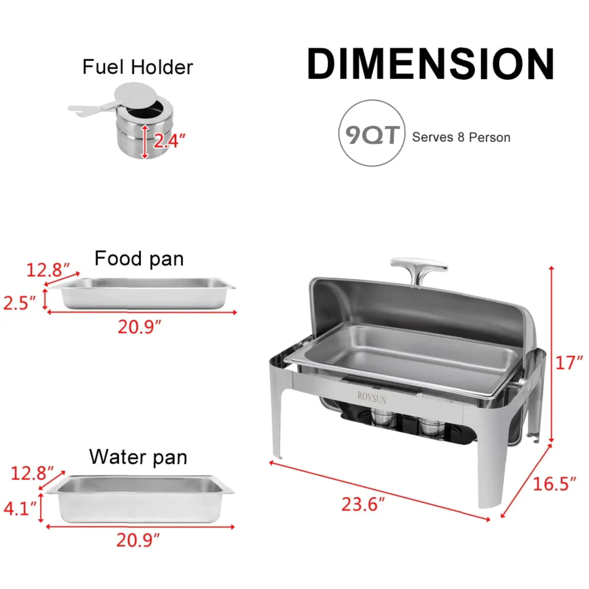 Food Pan Size: 20.9"L x 12.8"W x 2.5"H