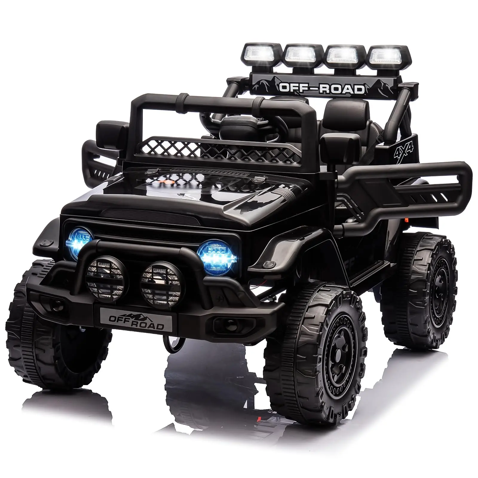 ·[Realistic Design] The upgraded ride on truck is designed with more attention to real details, aiming to provide kids with a more interesting play experience. The car is equipped with adjustable seat belts, LED lights, mesh front windows and steering wheels. 12V motor and traction tires, suitable for driving on different terrains.
