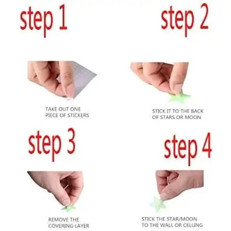 Easy to Use: Simply attach the included adhesive stickers to the back of the stars, then place them wherever you desire to create a wide variety of patterns and designs. These stars store energy by absorbing light from indoor fixtures or sunlight, releasing a soft, luminous glow at night. The longer they are exposed to light, the longer their glow will last in the dark.