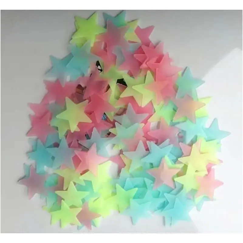 2 pcs Mixed Color Glow in The Dark 3D Stars Luminous Fluorescent Plastic Wall Sticker for Kids Baby Room Bedroom Ceiling Home Decor