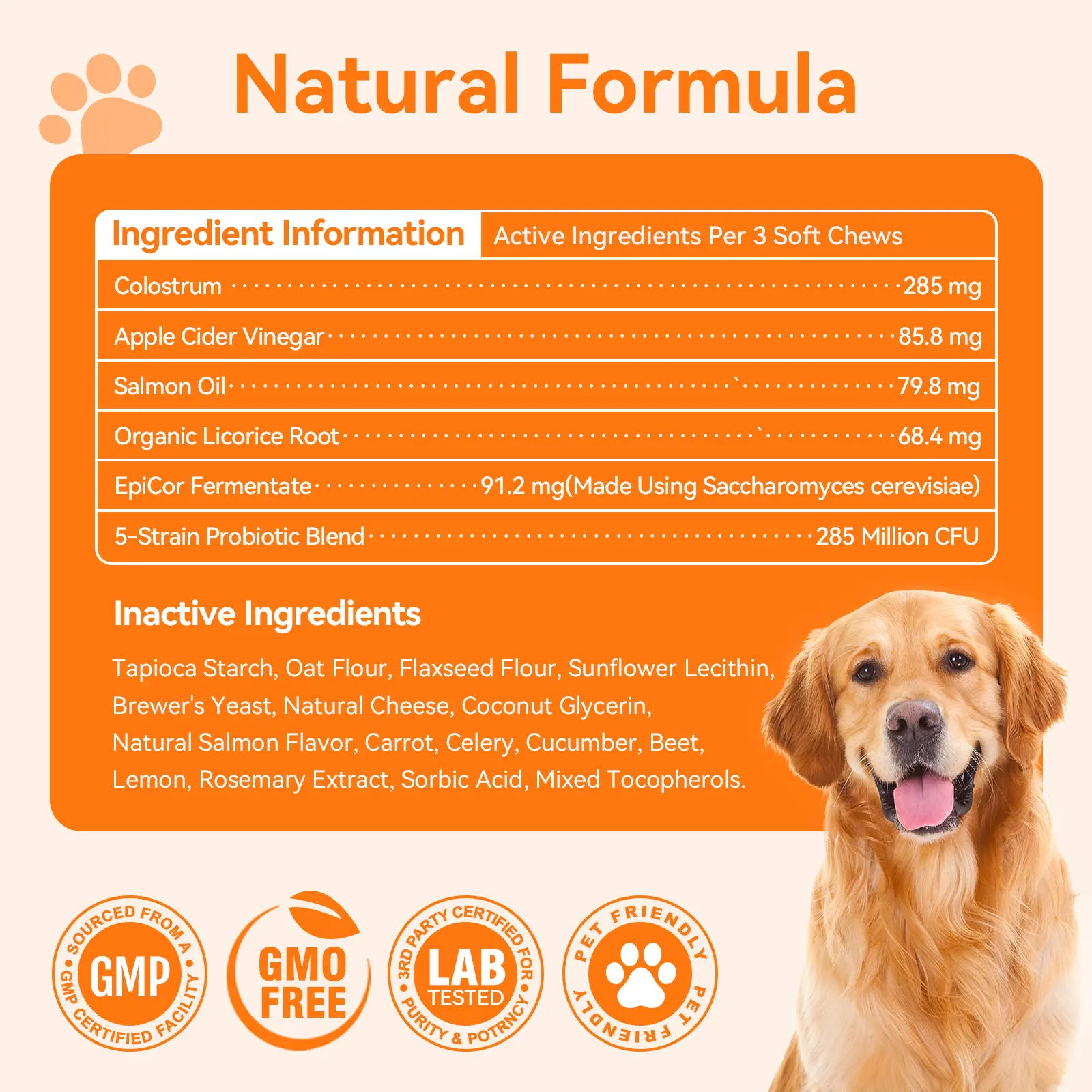 ·Active Ingredients: Contains Colostrum, Salmon Oil, Organic Licorice Root, and 5-Strain Probiotic Blend.