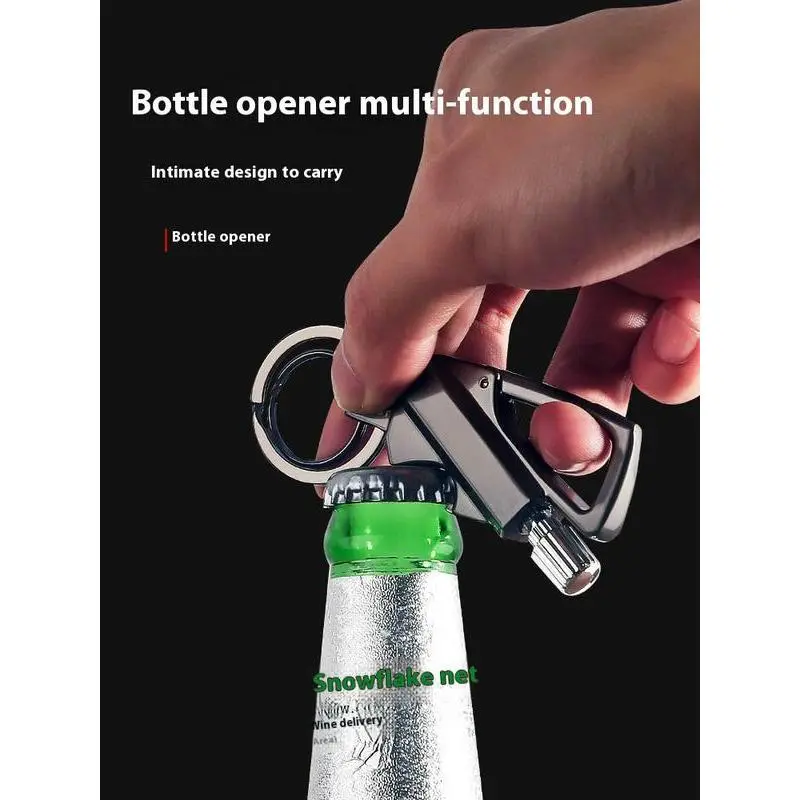 This Sports Multifunctional Keychain is an ideal Father's Day gift.It's a match keychain bottle opener, perfect for any outdoor enthusiast.Crafted from permanent metal, it's fireproof and waterproof.Ideal for hiking and camping, it ensures safety without kerosene.A practical tool for everyday use.