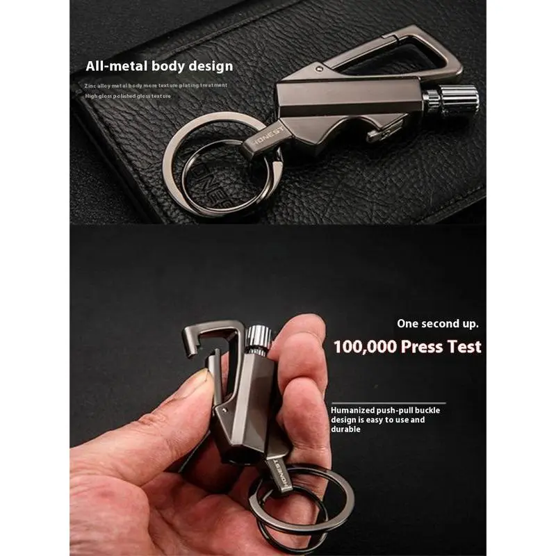 This keychain is your go-to accessory for matches and bottle openings. Its robust design makes it a must-have for any outdoor trip. Stay prepared with this multifunctional tool, ensuring safety and convenience on your adventures.