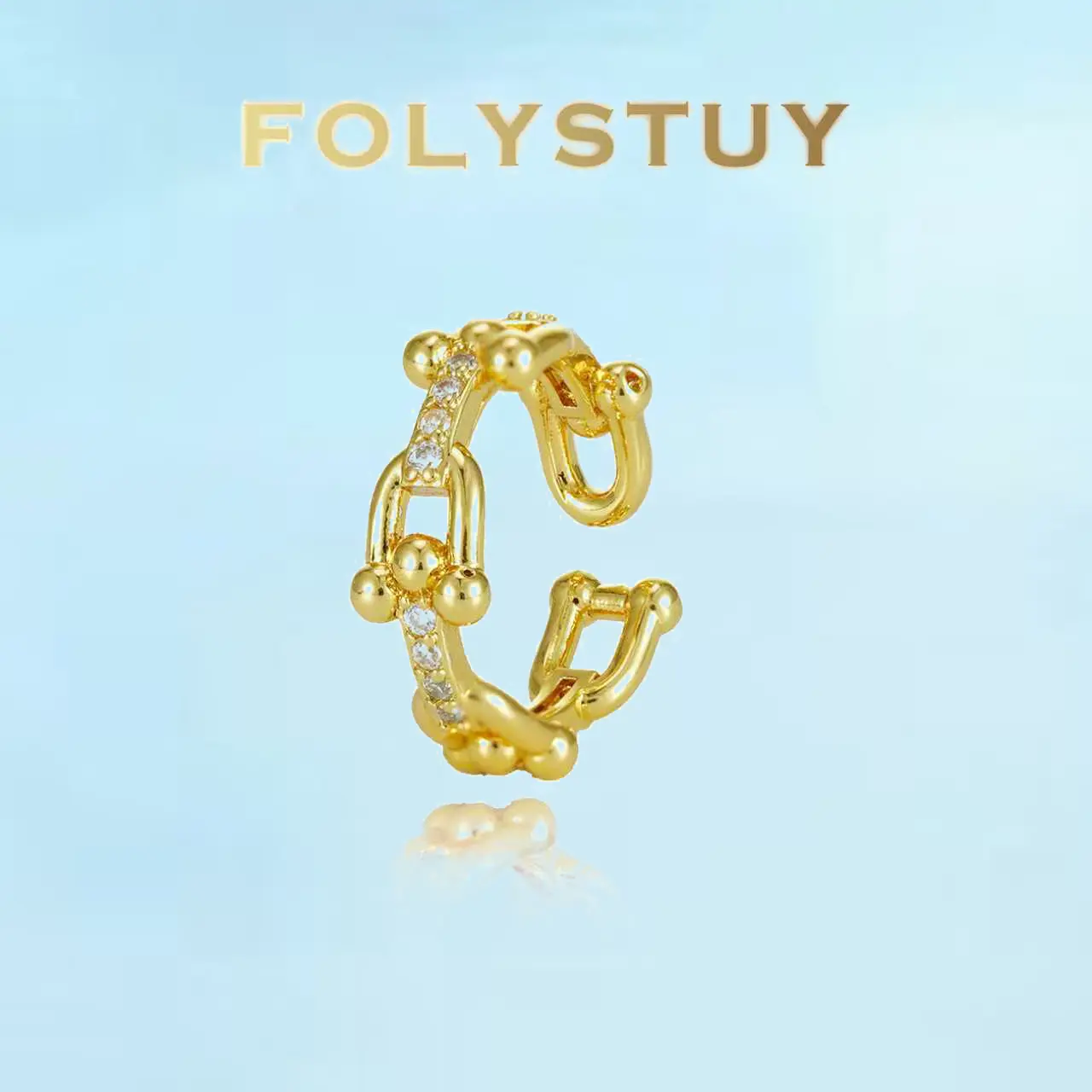 [FOLYSTUY (Y154)]19.6 Inch 8mm Paperclip Chain Jewelry Set, Necklace Bracelet Ring 3Pcs Set with Extension Chain, Minimalist U Link Chain Jewelry for Women Men, Everyday Wear Gift