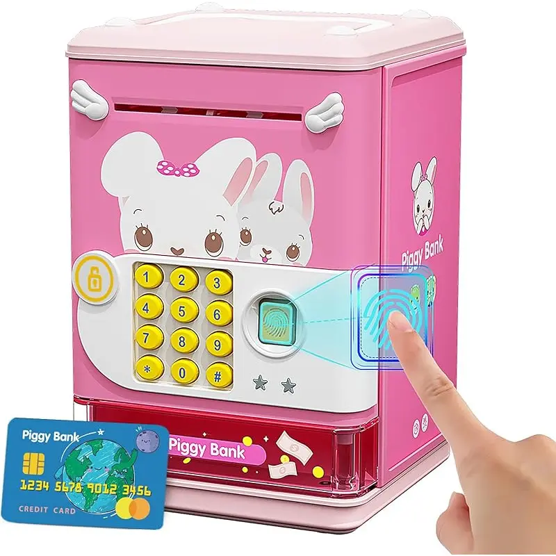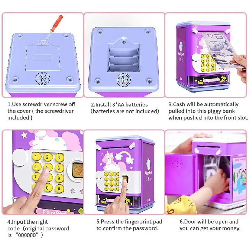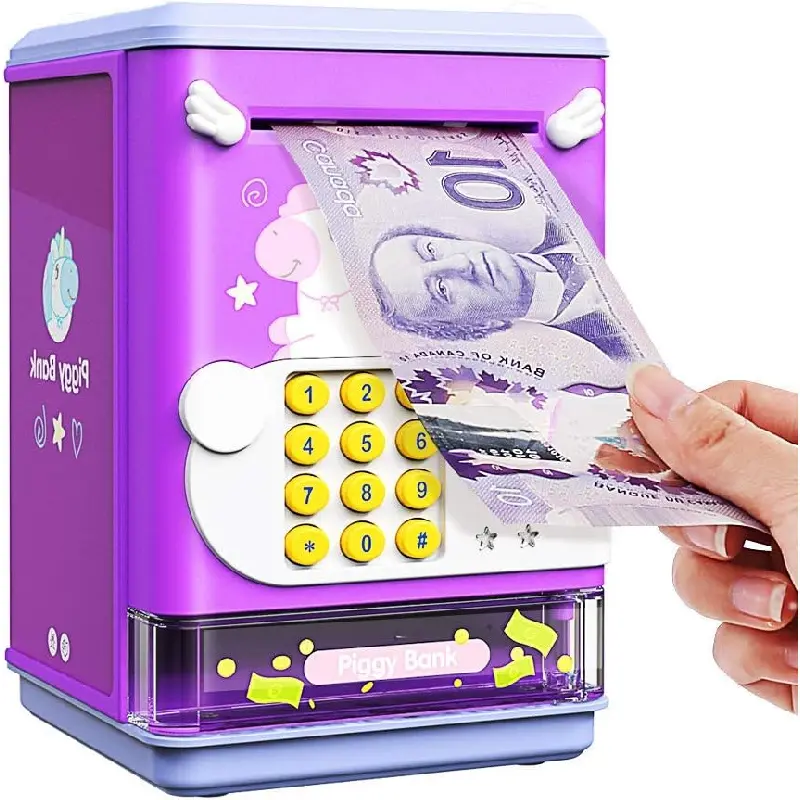 Our piggy bank is made of high quality ABS durable material, smooth edge without burrs,vivid color, no smell and easy to clean.So the can play safely.