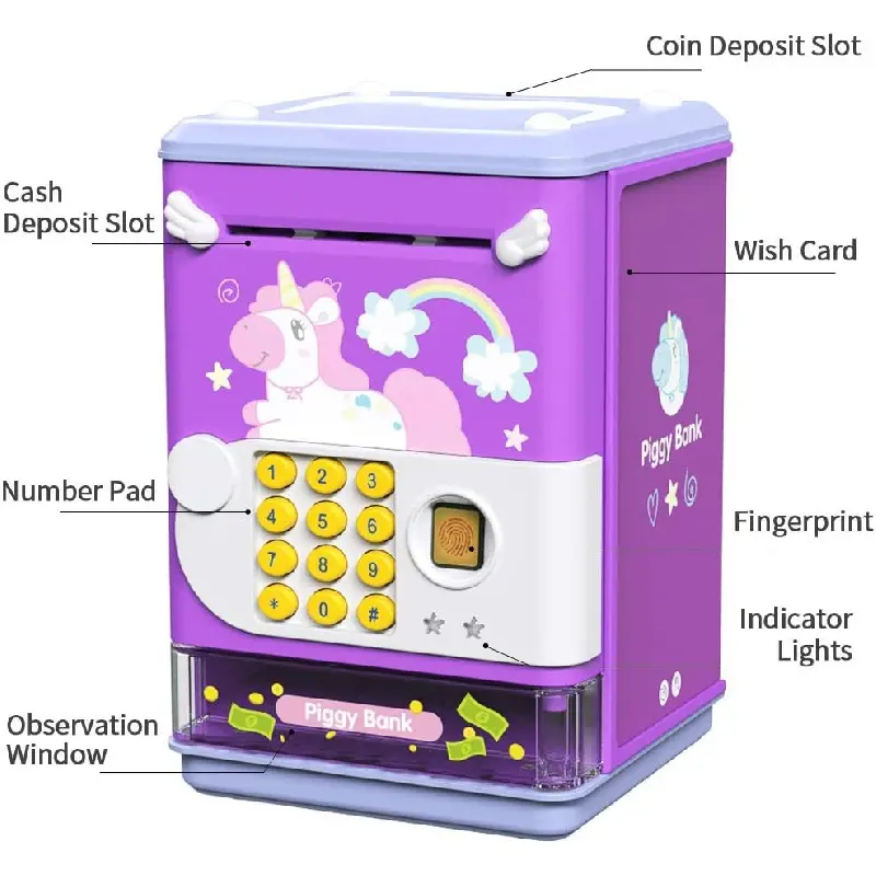 Deejoy Digital Mimi-ATM Machine is your’ personal piggy bank that saves their money safely with their own password: