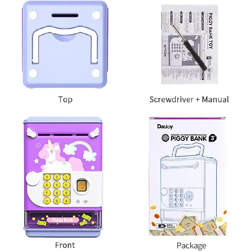 Fun to Keep The Money Safe: Your can easily set his/her own password to keep the money safe. It is also a little practice for them to learn to memorize the password. Reset the password is also very easy! Please contact us if you have trouble changing your password, it rarely happen but we can offer free exchange if it did. No Key to Lost and Restore to Default Password within 10 seconds: Never need to worry that you need to break it in order to get the money out. Forgot the password? Don’t worry! Reset the password to default password just 10 seconds. See-through window: The transparent window allows your to see through how the the inner mechanisms work. Easily know how much savings they already have and be proud of his/her saving power! Easy to Program and Operate: Our instruction included in the package details the steps how to change modes and modify the password - engaged with your to learn how to program and operate this savings box. Large Storage Area for your to Save Coins, Cash and any secret treasures: This 5. 31 inches*5. 31 inch*7. 87 inch allows your to save way more money than they think! Your will be surprised how much money he/she can save up.