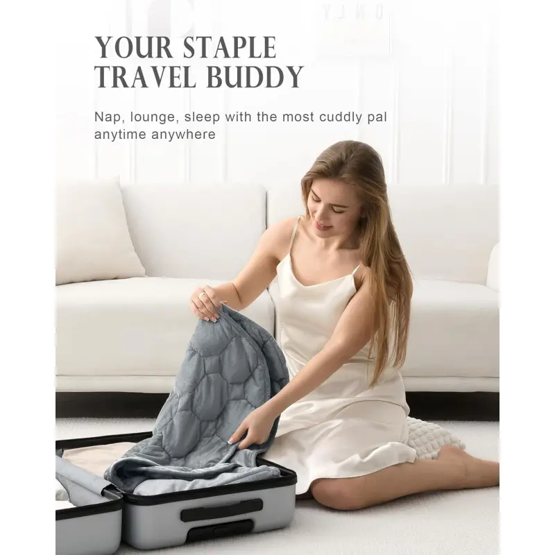 Weighted Blanket for Travel:Weighted lap pad is perfectly sized for travel.Just roll it up and throw in your luggage before hitting the road, you can enjoy the relaxing sleep and rest where you are.Take this security blanket with you and stay grounded for days and nights even when away from the comfort of home