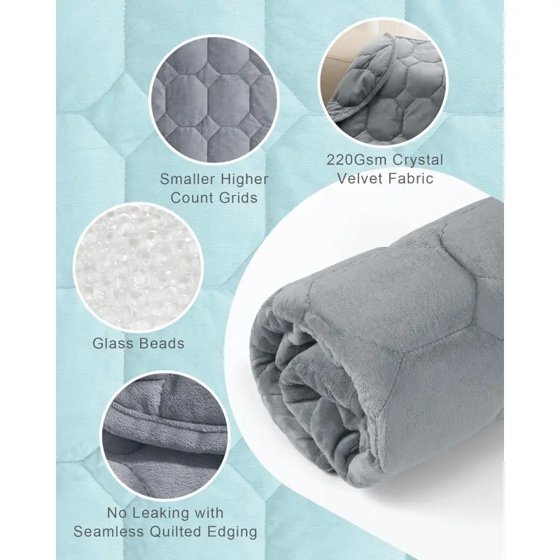 Weighted Design: This adult weighted blanket uses double-sided crystal velvet fabric with a silky smooth touch and fine texture, providing an ultimate comfortable sleep experience.The blanket is filled with 50 evenly distributed 0.03-inch glass beads that provide deep pressure and effectively improve sleep quality.The 7-layer structure and seamless edge design prevent the glass beads from rustling or leaking out